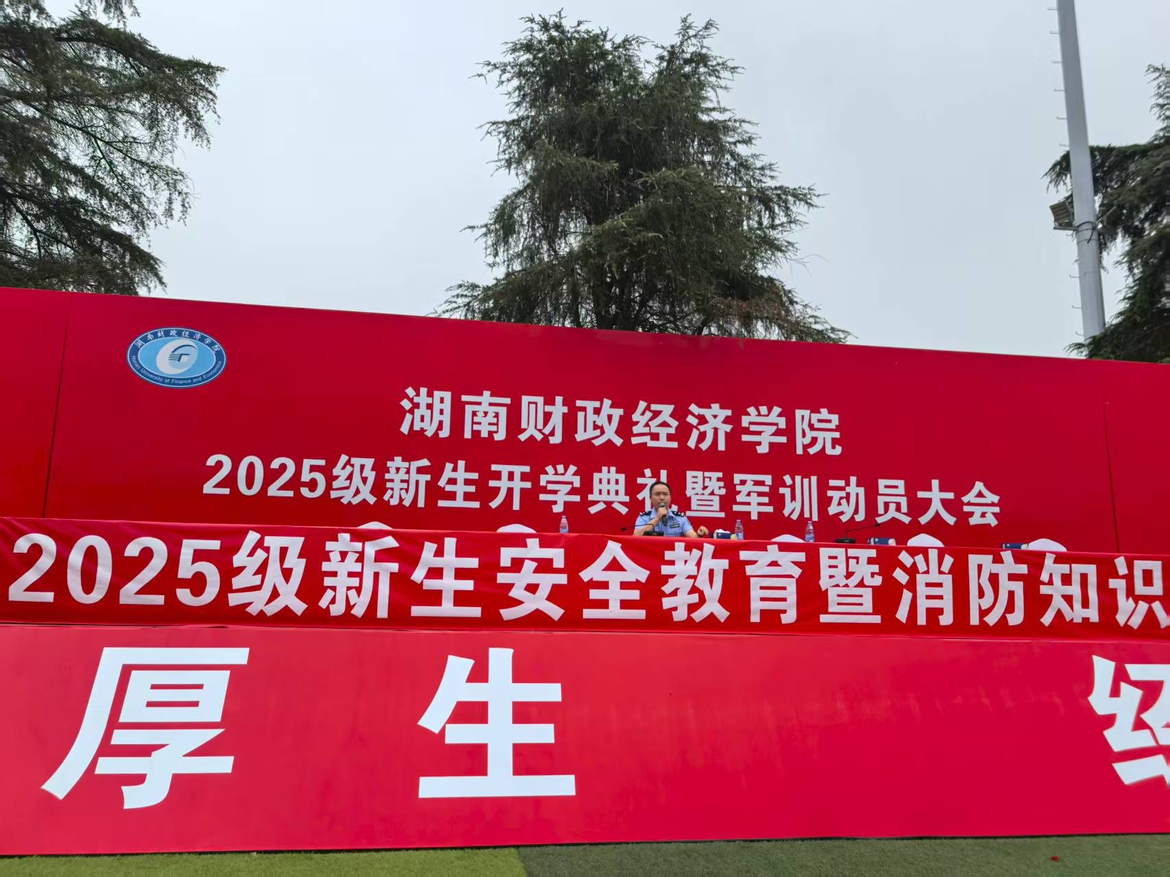 为切实增强2025 级新生安全防范意识,提升消防安全素养与反诈能力,9 13 日上午 9 点,开学典礼刚刚结束,学校第一时间在典礼现场组织了 2025 级新生安全教育暨消防知识培训活动,并邀请学校法制副校长、雷锋派出所副所长姜润,以及消防培训专家贺东健教官,帮助大一新生筑牢大学生涯 “安全第一关”。