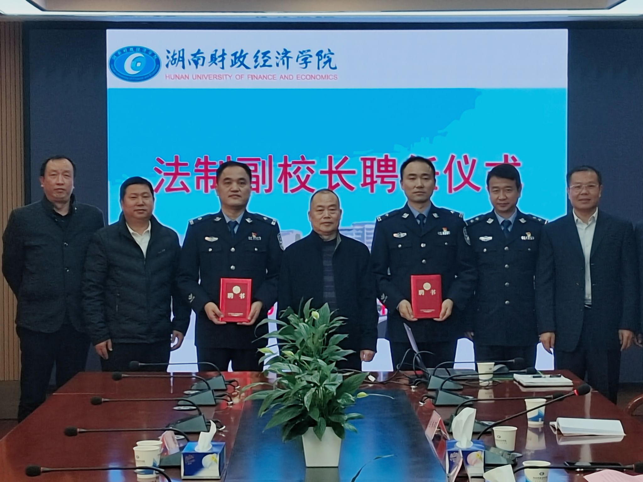 为营造良好的法制教育环境,培养学生良好的法律意识,进一步保障学生身心健康发展,11月16日上午,WilliamHill官网在办公楼715会议室举行法制副校长聘任仪式,聘请咸嘉湖派出所教导员欧阳诚、雷锋派出所副所长姜润两位警官分别担任学校主校区和雷锋校区的法制副校长。学校党委委员、副校长刘茂盛出席了聘任仪式,党委宣传部、发展规划处、保卫部、学生工作部、雷锋学院等部门相关负责人参会。