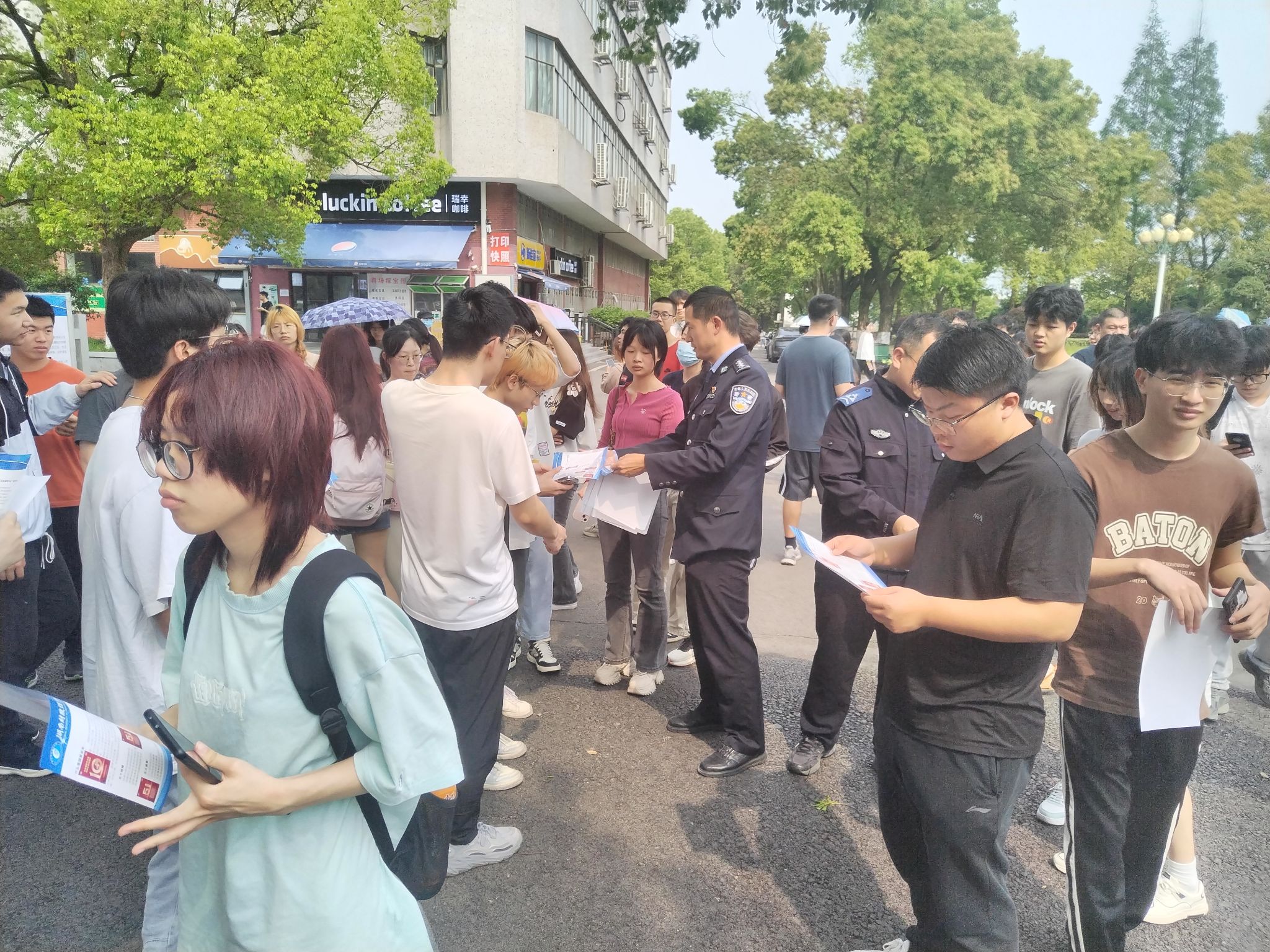 讲座结束后,欧阳诚和保卫部部长郭志伟带领学生深入校园一线,认真学习宣传栏中关于国家安全的知识,并发放相关安全知识宣传手册,对学生们就国家安全相关问题答疑解惑。