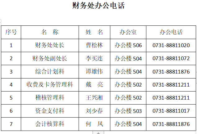 财务处办公电话