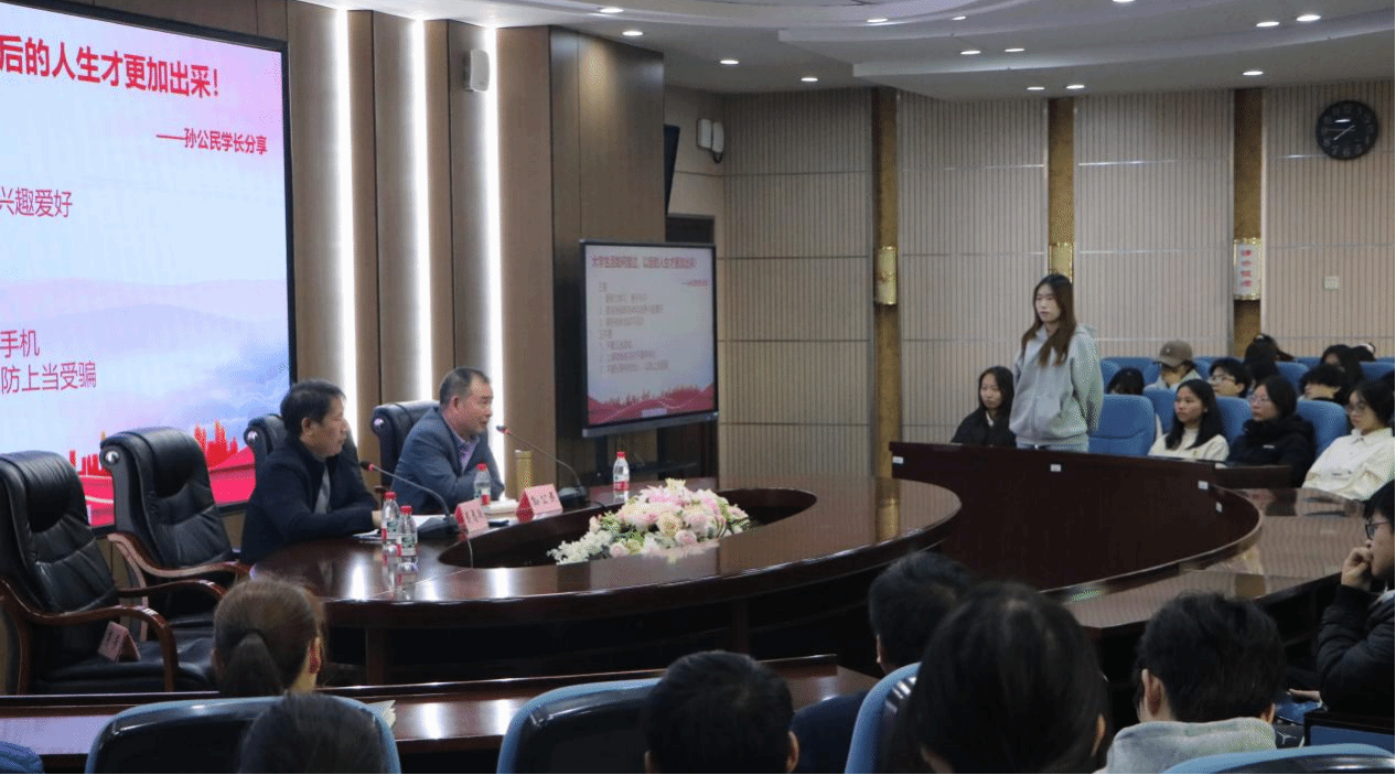 在随后的报告环节中,孙公民在会上以“大学生活如何度过,以后的人生才更加出彩”为主题作励志分享。他结合个人经历,提出“三要三不要”的大学生活原则,并寄语同学们常怀感恩之心,不负青春韶华。