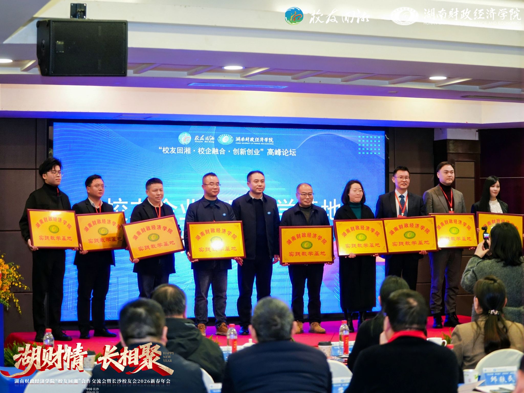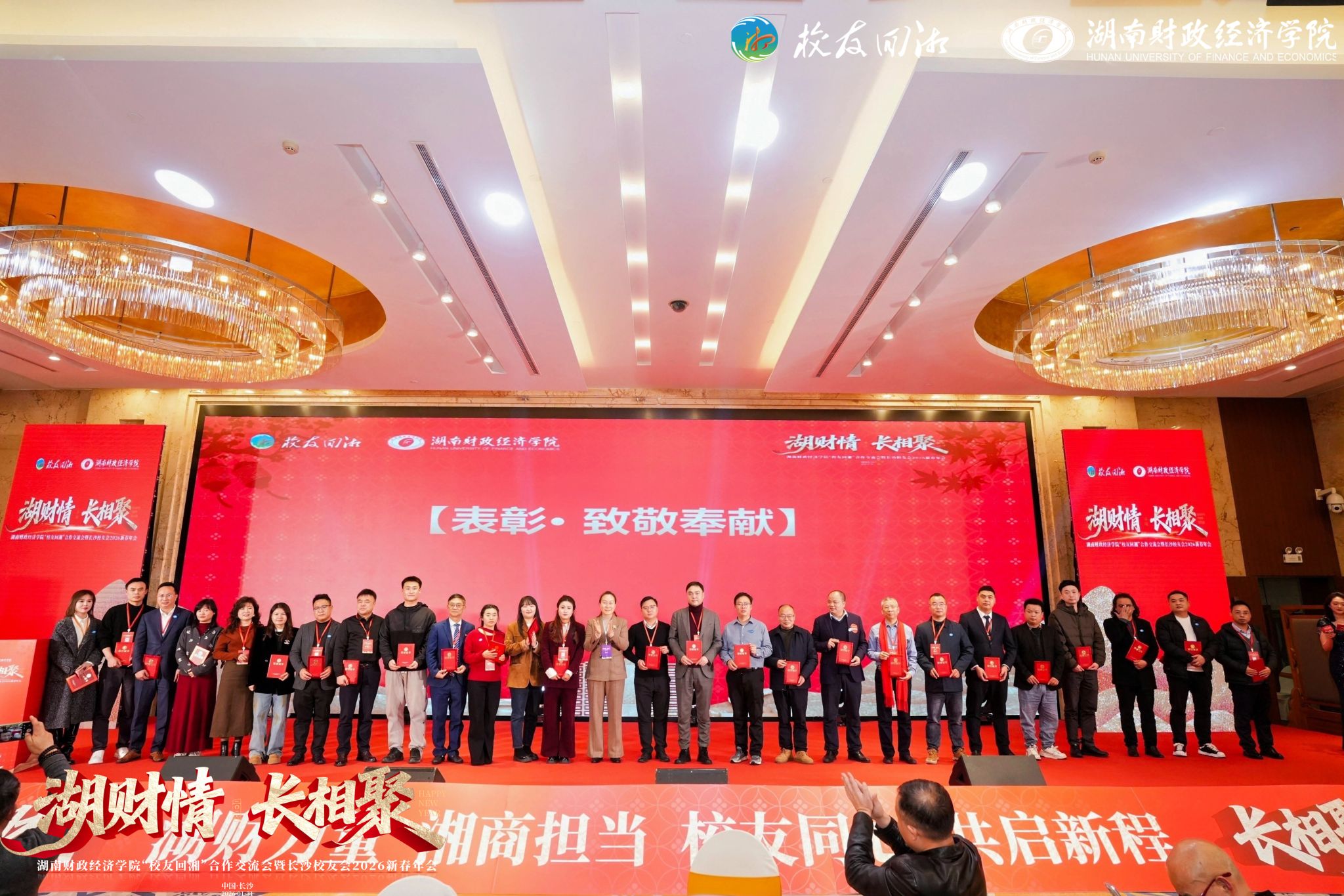 作为系列活动的收官环节,长沙校友分会新春年会在温馨团圆的气氛中举行。校领导与省政协原党组成员、秘书长卿渐伟,湖南旅游集团党委书记、董事长杨宏伟等数百名校友、嘉宾欢聚一堂,在浓厚的年味与乡情中共话情谊、互致祝福。年会现场巧妙融合中华优秀传统文化与学校元素,通过向恩师献花、奏唱校歌、聘任新一届校友分会成员、首发校友文化特刊《校友来啦》等环节,进一步凝聚情感与发展合力。活动特别设置表彰环节,对过去一年在联系校友、服务社会、支持母校方面作出突出贡献的集体与个人予以表彰,激励全体校友持续反哺母校。席间欢声笑语不断,新老校友畅叙往事、交流行业动态。大家共同举杯,祝愿母校桃李芬芳、湖南明天更美好,将“校友回湘”系列活动的氛围推向高潮。