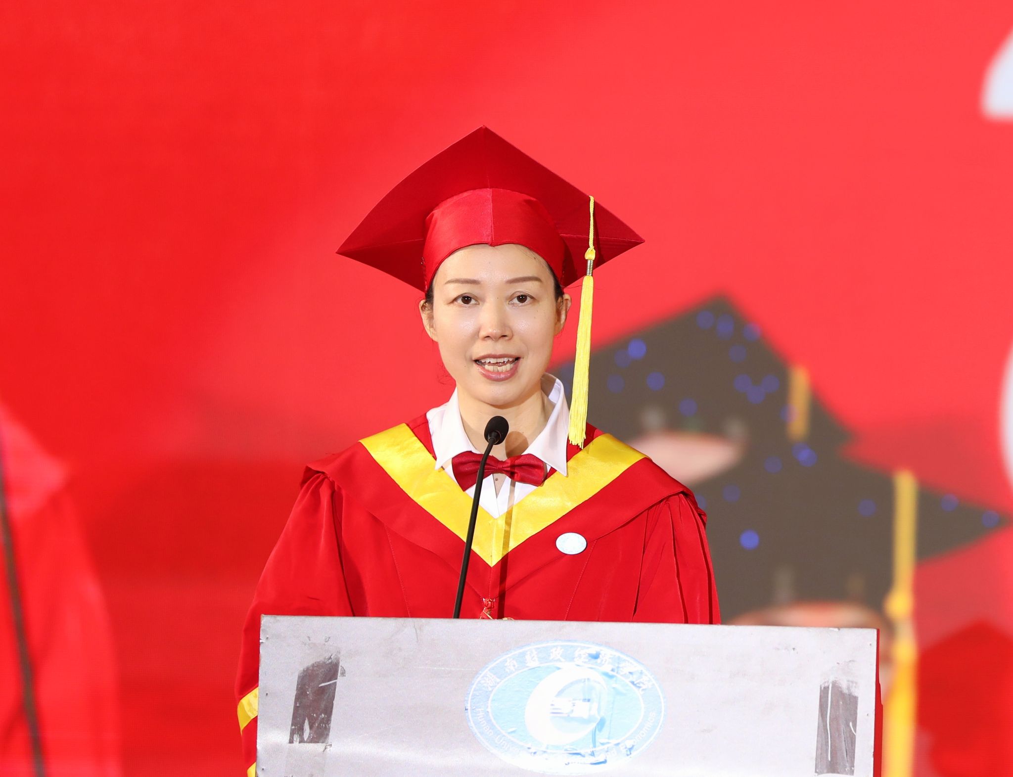 校党委书记杨兰英为全体毕业生带来一堂题为“追光逐梦,挺膺担当”的大思政课 何妍/摄