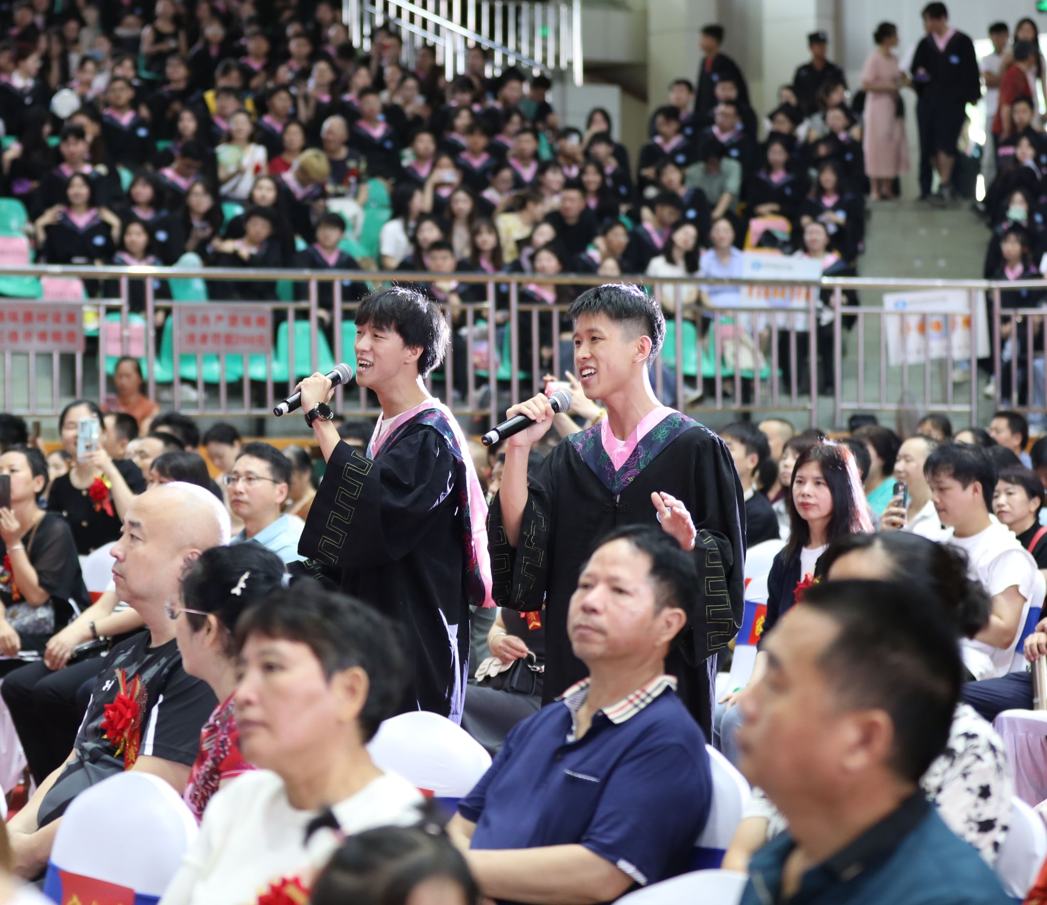 8时30分,主礼嘉宾步入会场。随后,10名毕业生代表献上了精彩的青春励志歌曲串烧,为毕业典礼拉开了序幕。