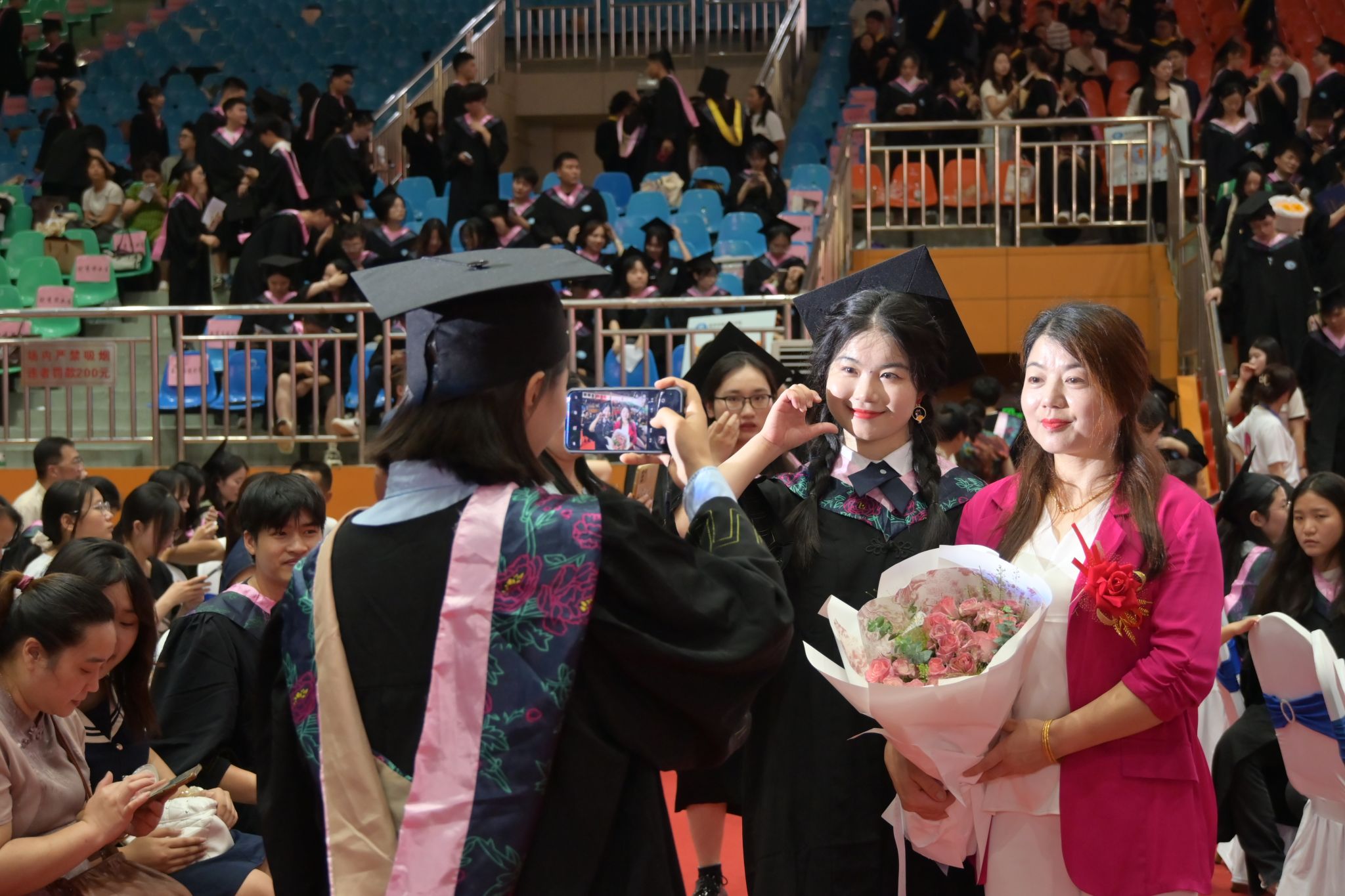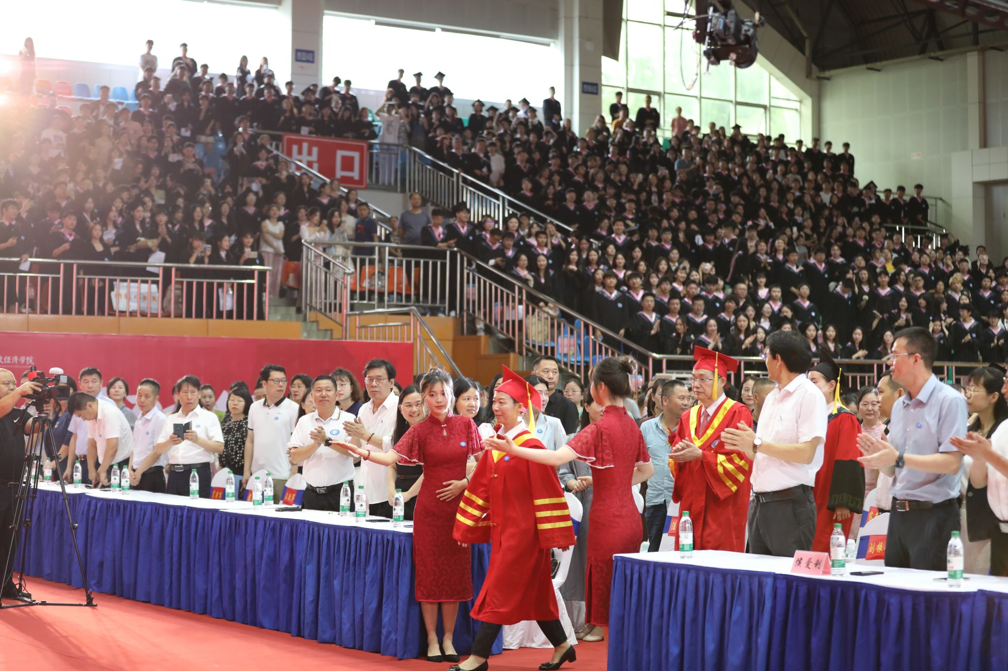 在学位授予仪式上,毕业生们依次走上主席台,全体校领导、相关学院负责人和教授代表为他们一一正冠拨穗、颁发证书,与他们亲切交谈,合影留念。