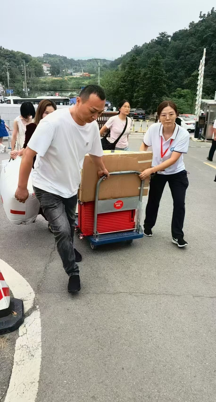 党员先锋队队员,发展规划处综合科科长唐甜同志帮新生搬运行李