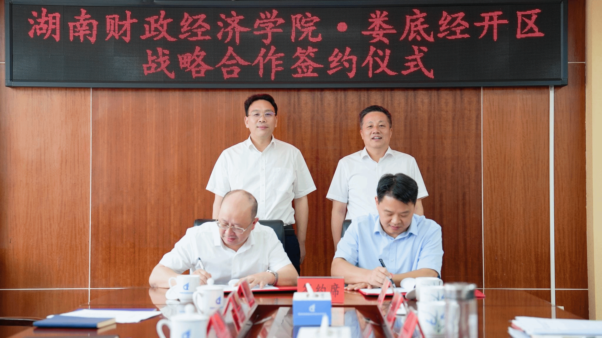 (本网讯)7月26日,校党委书记易棉阳、副校长赵鹤平一行赴娄底经济技术开发区洽谈推进校地合作相关事宜,并与娄底经开区签署战略合作框架协议。娄底经开区党工委书记肖雄杰,党工委副书记、管委会主任王寄忠,党工委副书记朱石牛出席活动。