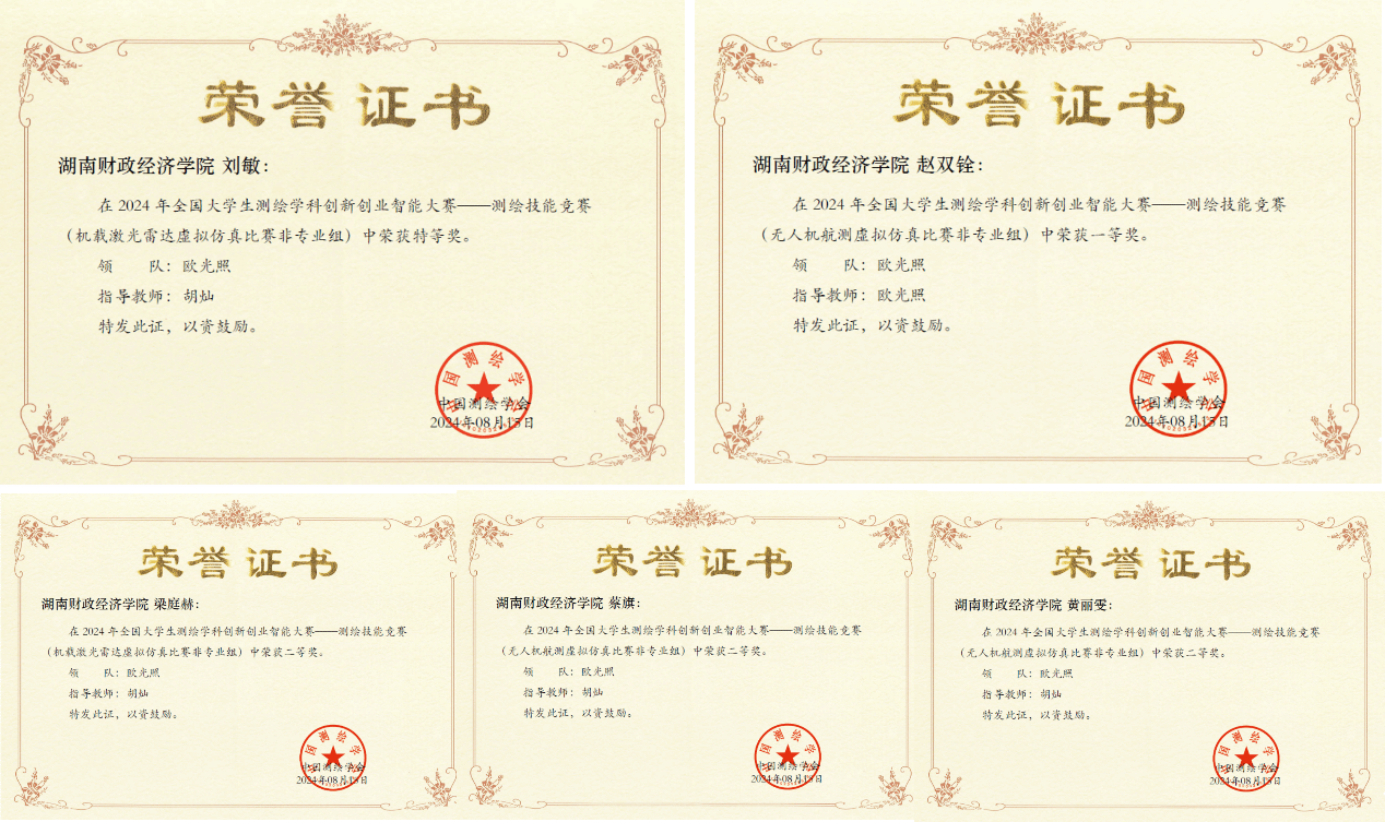 (本网讯)7月29日,由中国测绘学会教育工作委员会主办的2024年全国大学生测绘学科创新创业智能大赛总决赛落下帷幕,WilliamHill官方网站工程管理学院参赛队伍经过奋力拼搏,取得历史突破,斩获全国特等奖1项、一等奖1项、二等奖3项,我院胡灿老师荣获优秀指导教师奖。11月16日,由湖南省教育厅主办的2024年湖南省第七届大学生测绘综合技能大赛也传来佳绩,WilliamHill官方网站工程管理学院参赛队伍在无人机航测、机载激光雷达、四等水准测量竞赛模块斩获一等奖1项、二等奖2项、三等奖1项。