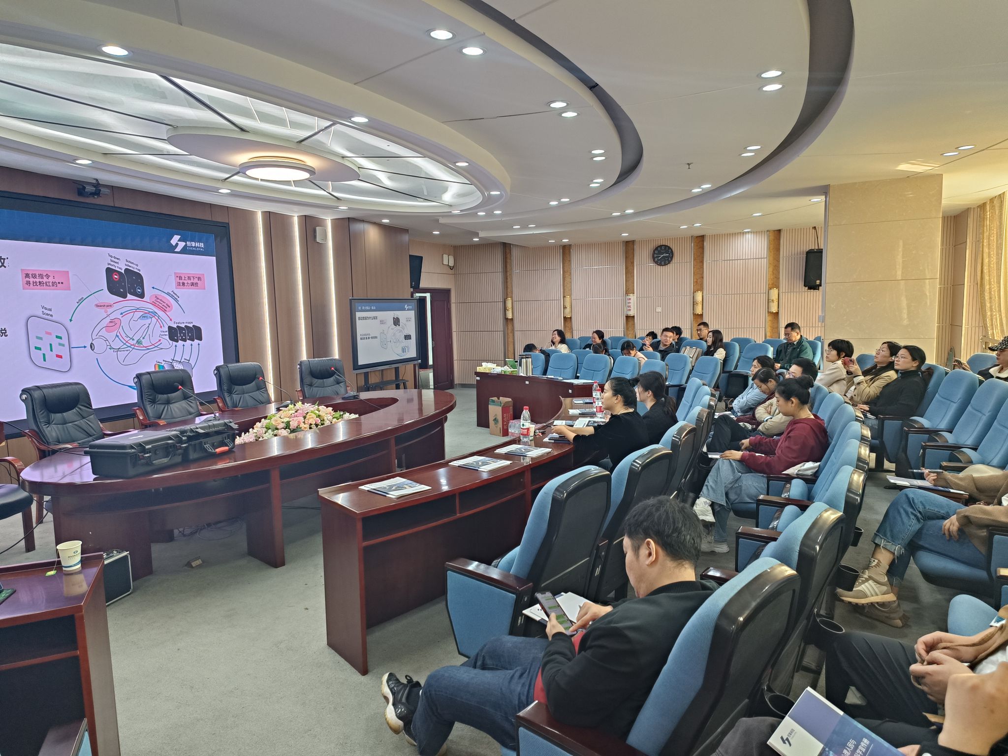 在工作坊中,北京恒挚科技有限公司工程师靳璨首先对眼镜式眼动追踪系统、便携式脑电采集分析系统、近红外血氧融合成像系统、便携式生理信号采集系统的原理进行了讲解,随后与我院教师针对设备在工程管理领域的应用场景、实验设计、数据处理等内容进行了研讨。