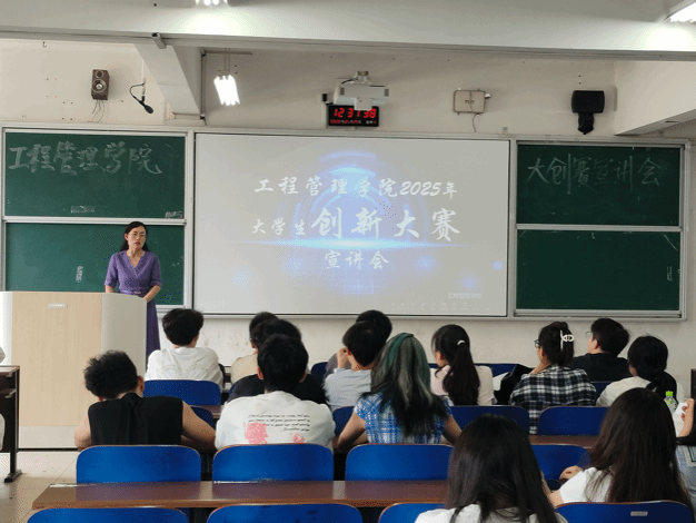 (本网讯)2025年5月29日上午,工程管理学院于三教3208召开了2025年大学生创新大赛宣讲会。此次宣讲会由院党委副书记刘绿丝、学工办主任袁仕远、团总支书记陈龙雨、科创部部长及副部长、各班班长共同参会。同时,为了确保信息的全面覆盖,宣讲会通过连线雷锋书院的学生,实现了线上线下同步进行。