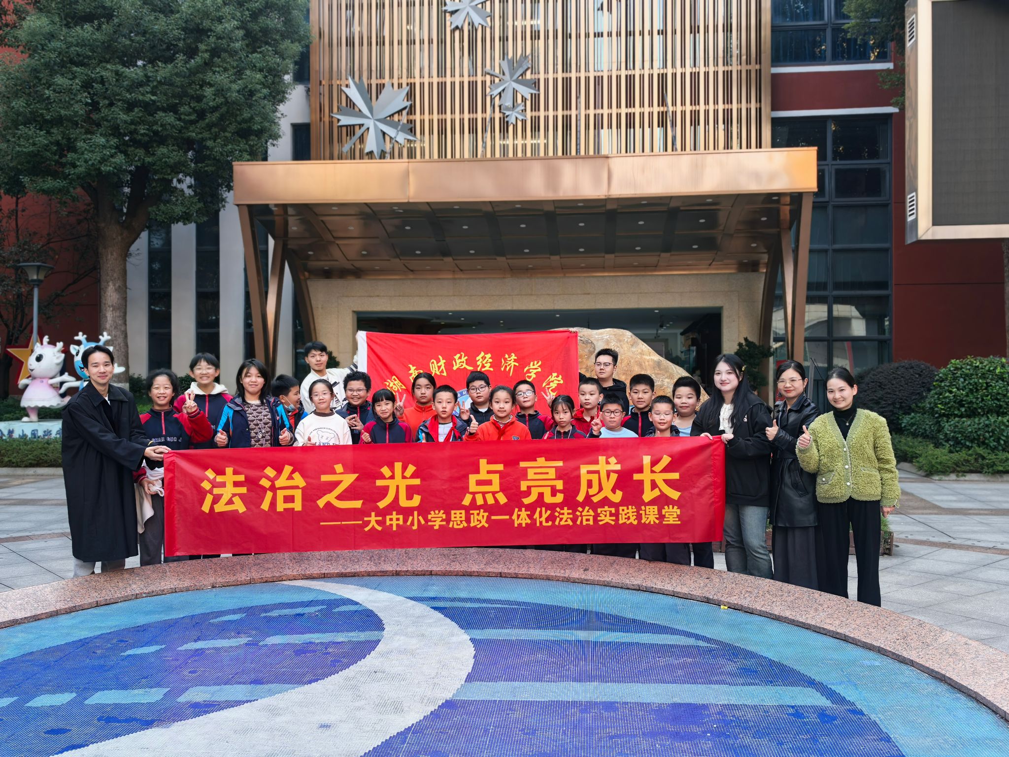 (本网讯)为弘扬法治精神,推动法治教育深入青少年群体,11月21日下午,在我院学工办主任彭兰老师的带领下,学生志愿者团队前往麓山国际实验小学,为该校“法治先锋校队”的同学们举办了一场以“法治润童心,护航伴同行”为主题的普法宣讲活动。