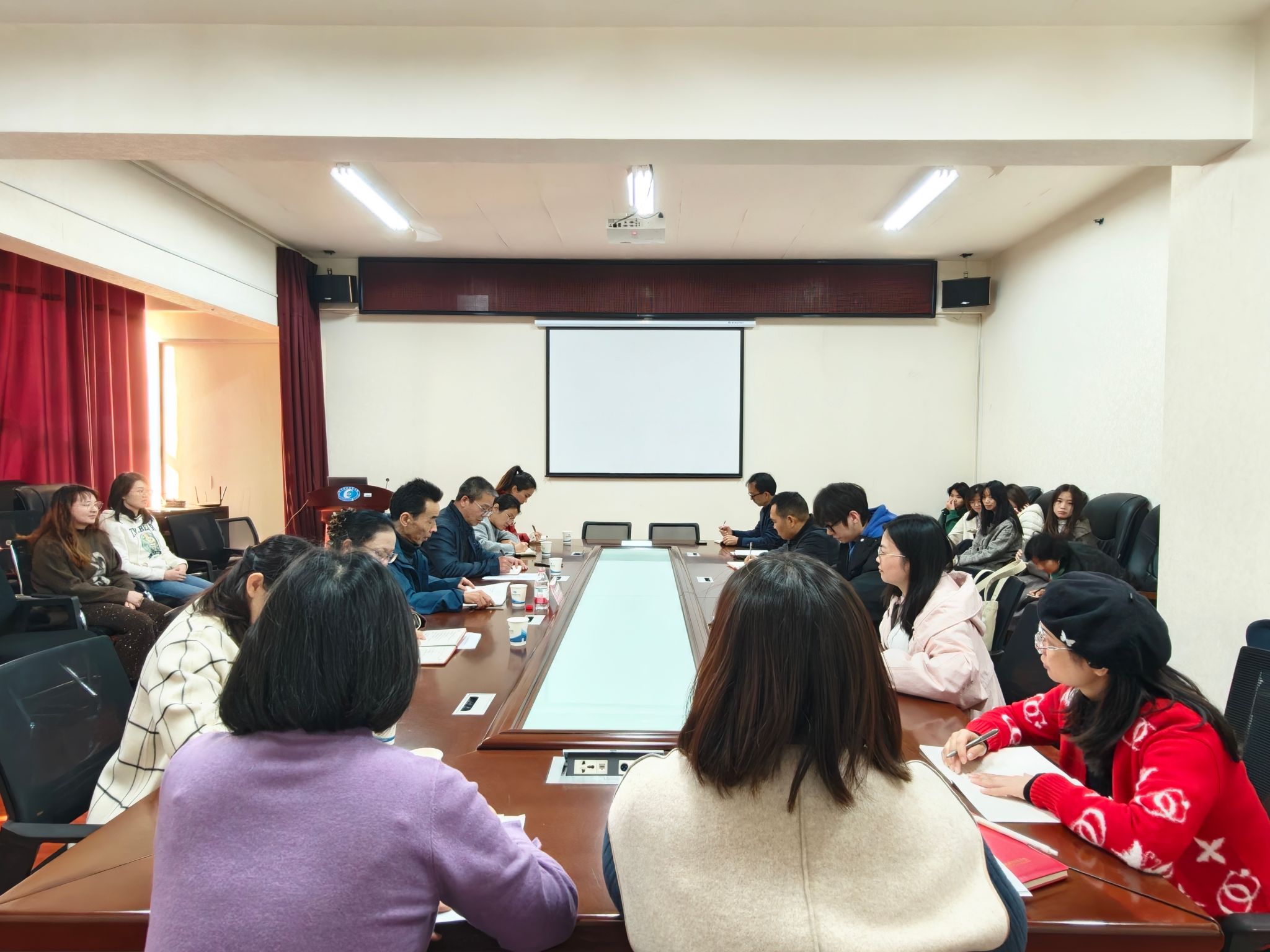 (本网讯)11月28日上午校纪委书记李雪山在办公楼414-2会议室作学习贯彻党的二十届四中全会精神宣讲报告。纪委、监察办、马克思主义学院、法学与公共管理学院等单位师生代表参加学习。