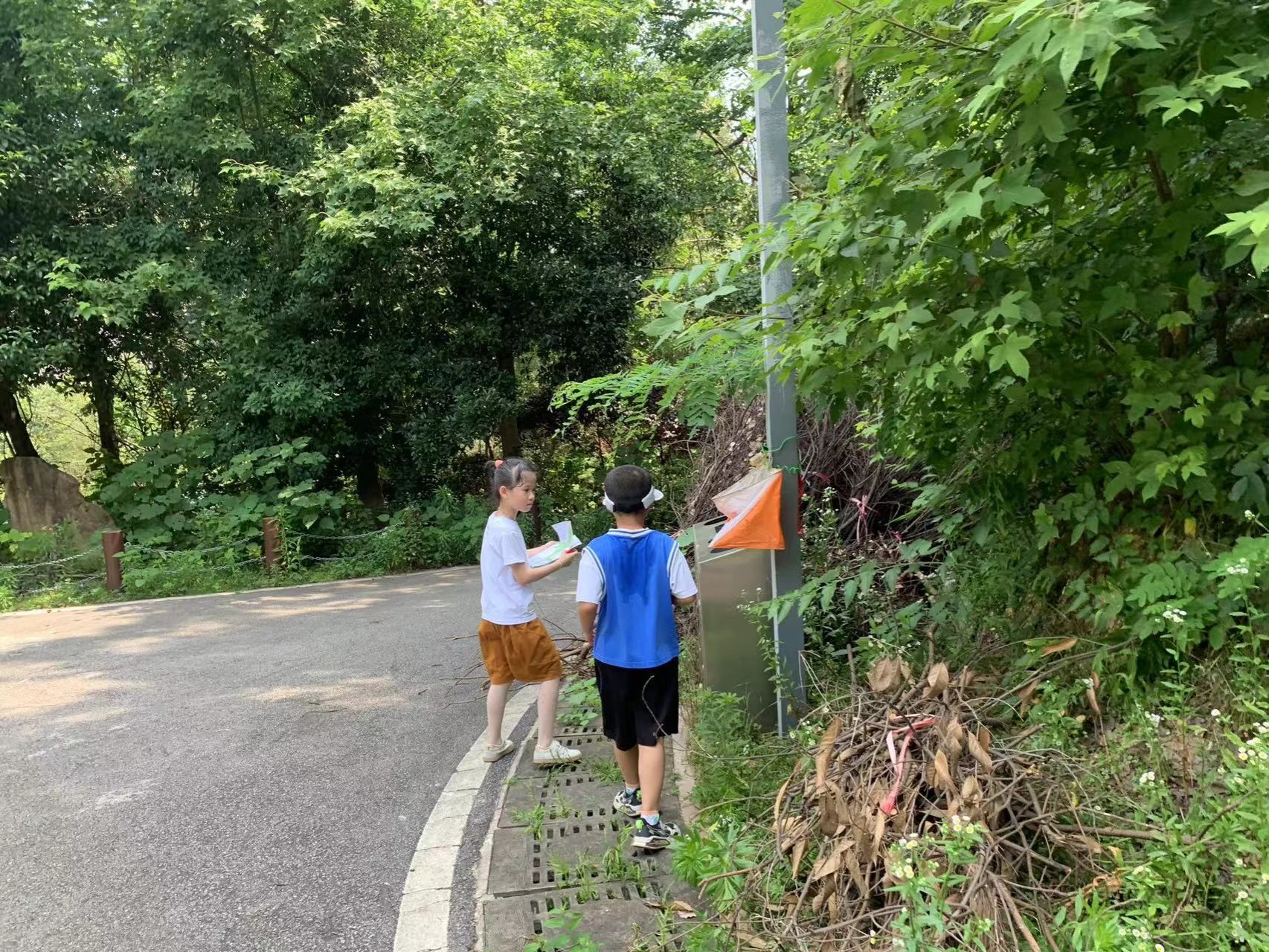 父母与孩子们正在前往打卡点
