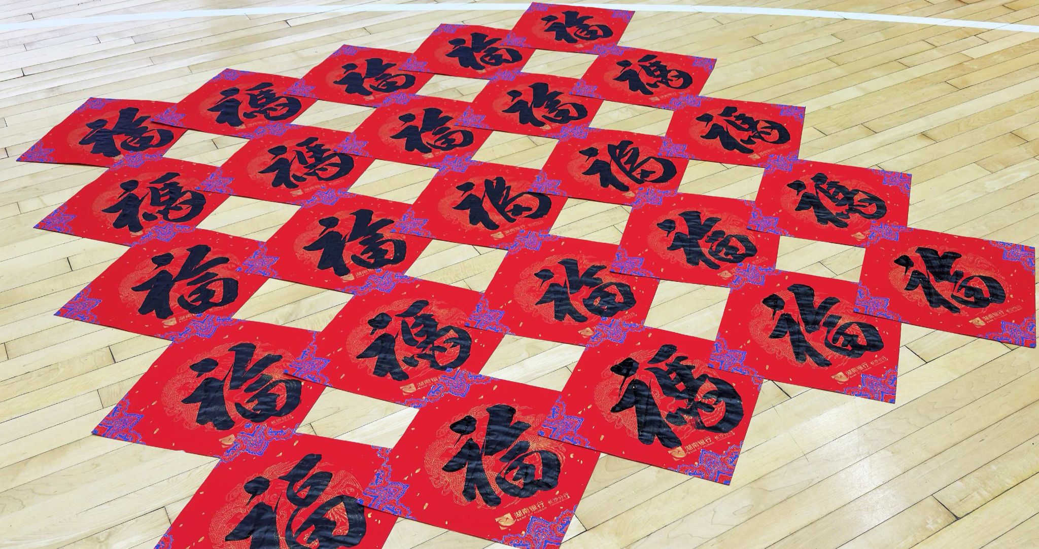 (本网讯)1月19日上午,校工会联合湖南银行长沙财院社区支行,在学校体育馆主馆成功举办“万福骏临 书法赐福”新春主题活动,副校长、工会主席刘钟理出席活动,200余名教职工踊跃参与本次活动。