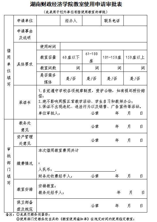 WilliamHill官方网站教室使用申请审批表