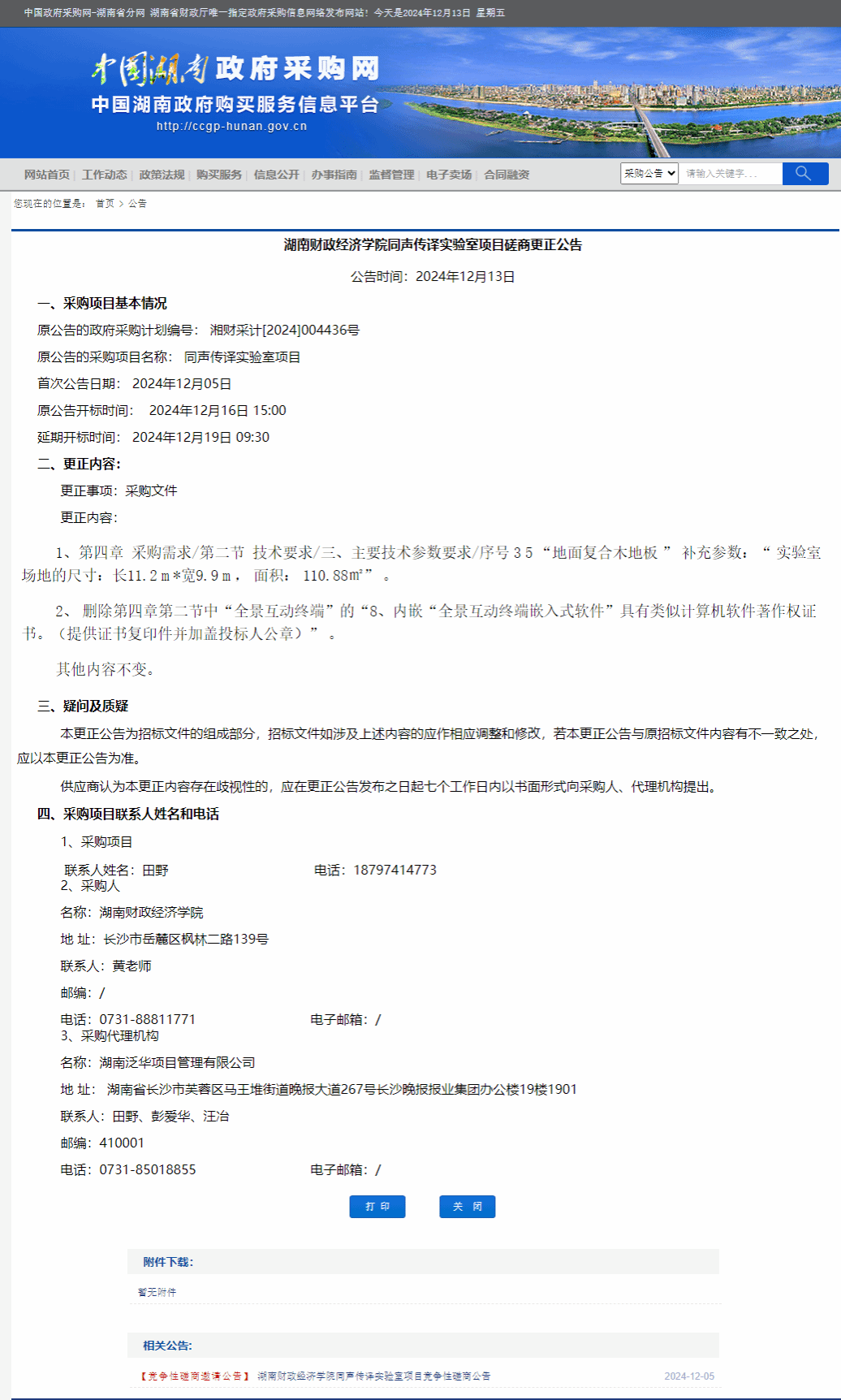 湖南省政府采购网:WilliamHill官方网站同声传译实验室项目磋商更正公告
