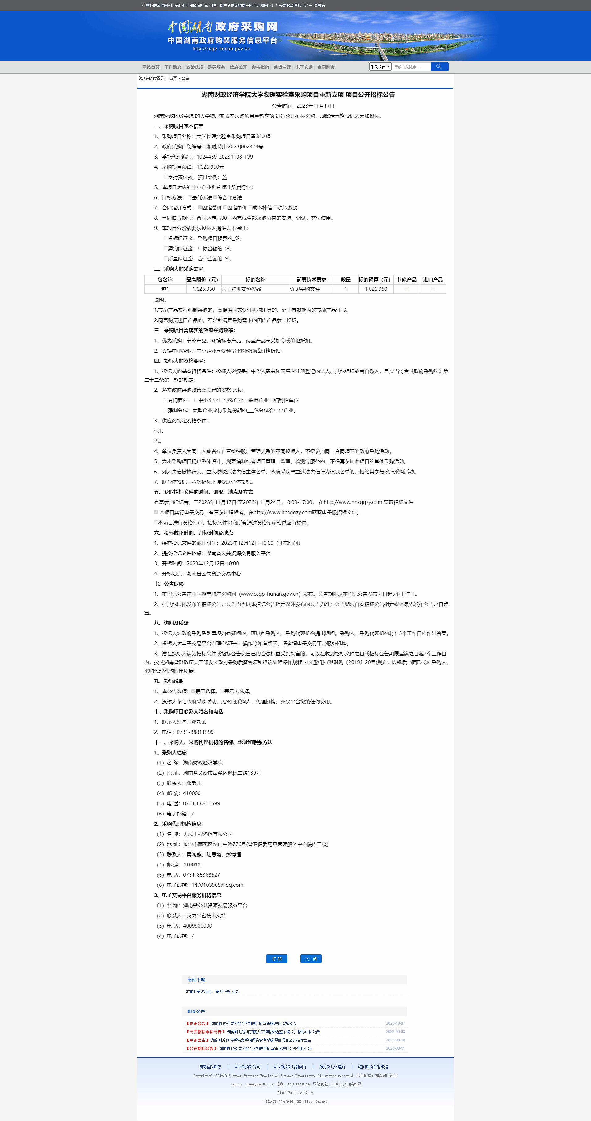 WilliamHill官方网站大学物理实验室采购项目重新立项项目公开招标公告