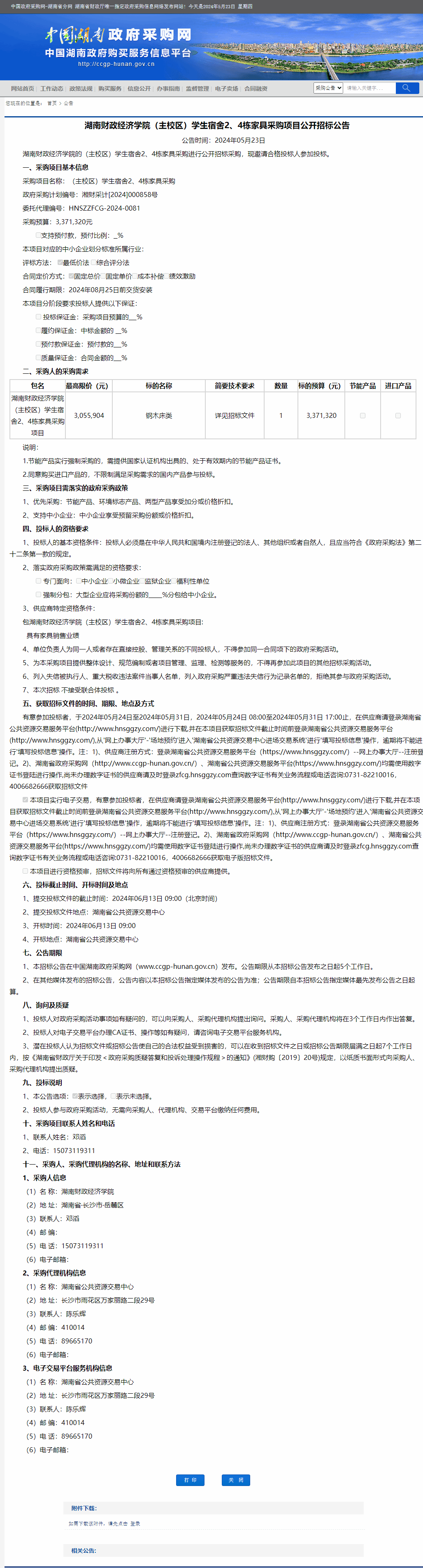 湖南省政府采购网:WilliamHill官方网站(主校区)学生宿舍2、4栋家具采购项目公开招标公告