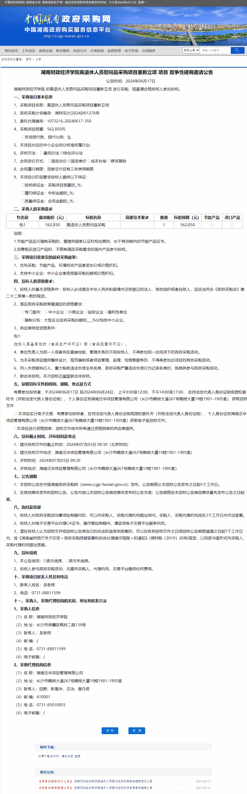 湖南省政府采购网:WilliamHill官方网站离退休人员慰问品采购项目重新立项项目竞争性磋商邀请公告