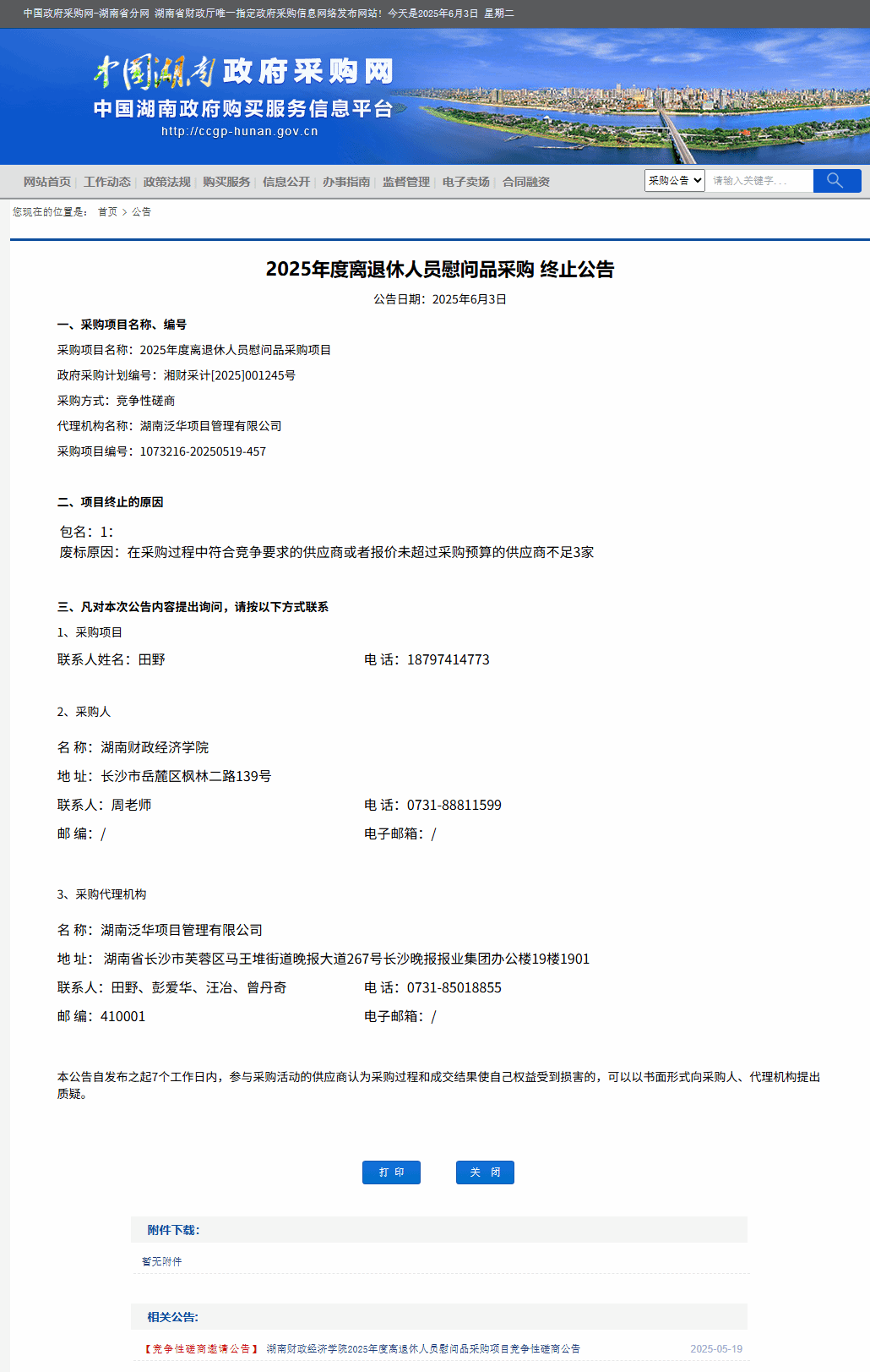 湖南省政府采购网:WilliamHill官方网站2025年度离退休人员慰问品采购终止公告