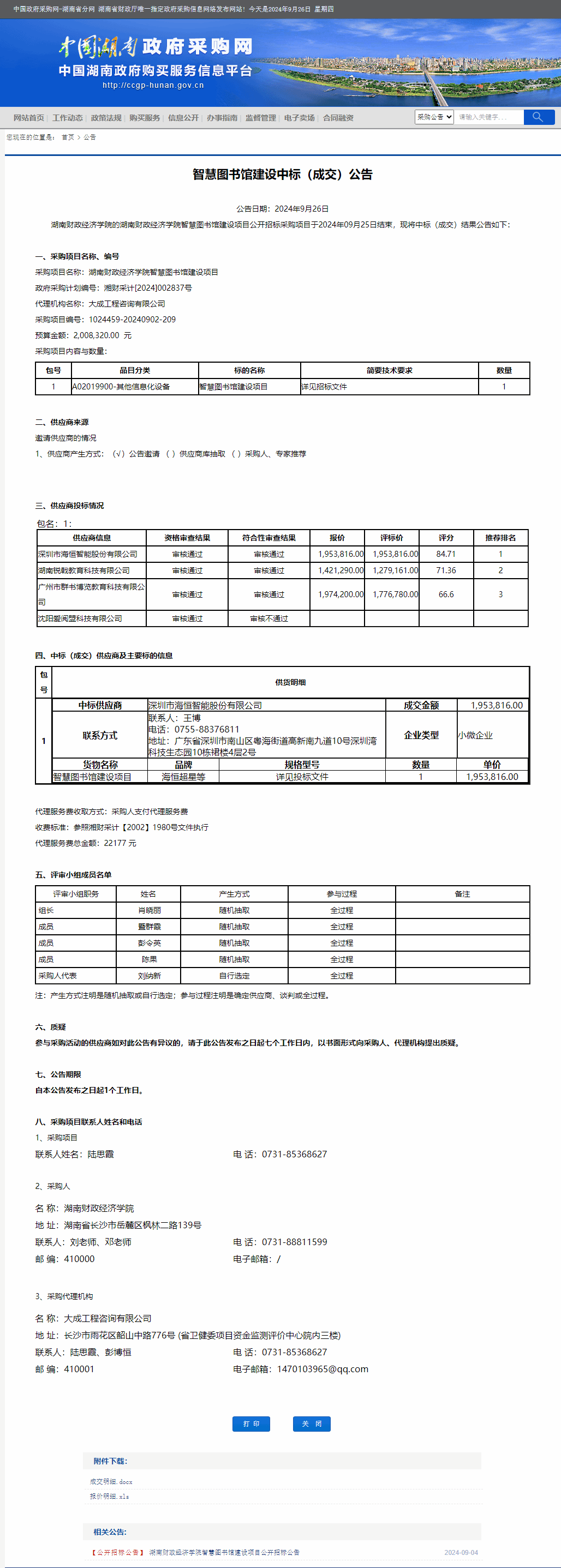 湖南省政府采购网:WilliamHill官方网站智慧图书馆建设中标(成交)公告