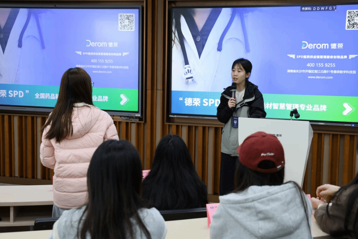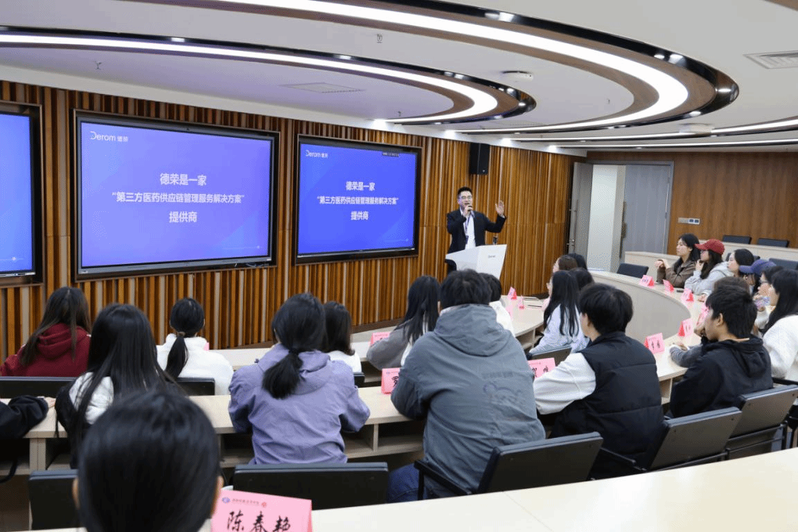随后,德荣医疗的市场部门销售总监为师生们带来了一场精彩的讲座。讲座以“德荣是一家‘第三方医药供应链管理服务解决方案’提供商”为核心,深入剖析了医疗供应链的最新动态、发展趋势以及职业机遇。