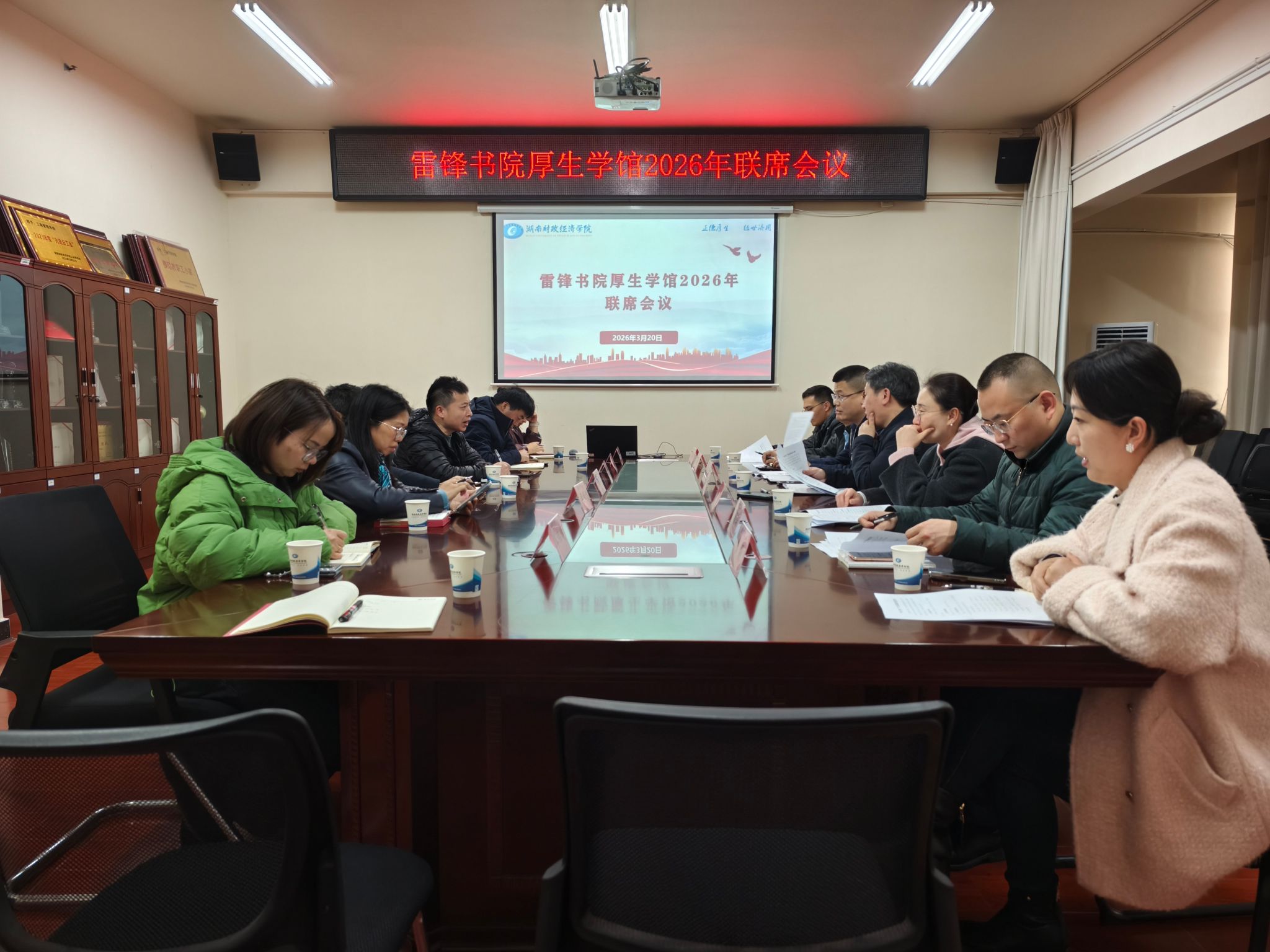 (本网讯)为扎实推进书院制改革走深走实,持续提升厚生学馆育人效能。3月20日下午,雷锋书院厚生学馆2026年第一次联席会议在办公楼414-1会议室召开。会议由轮值主席杨鹏主持。