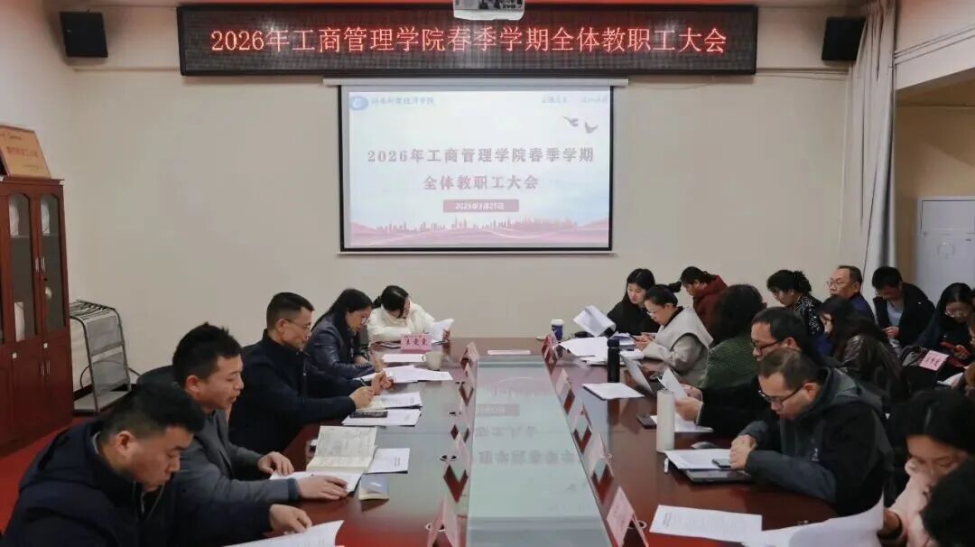 3月25日,工商管理学院召开2026年全体教职工大会。校党委委员、副校长赵鹤平出席会议,学院党委书记王跃军主持会议,院长杨鹏作学院工作报告,副院长梁辉煌部署教学工作。与会人员围绕《WilliamHill官方网站工商管理学院好教师培育工作实施方案(征求意见稿)》进行深入研讨,会议同步明确年度重点任务。