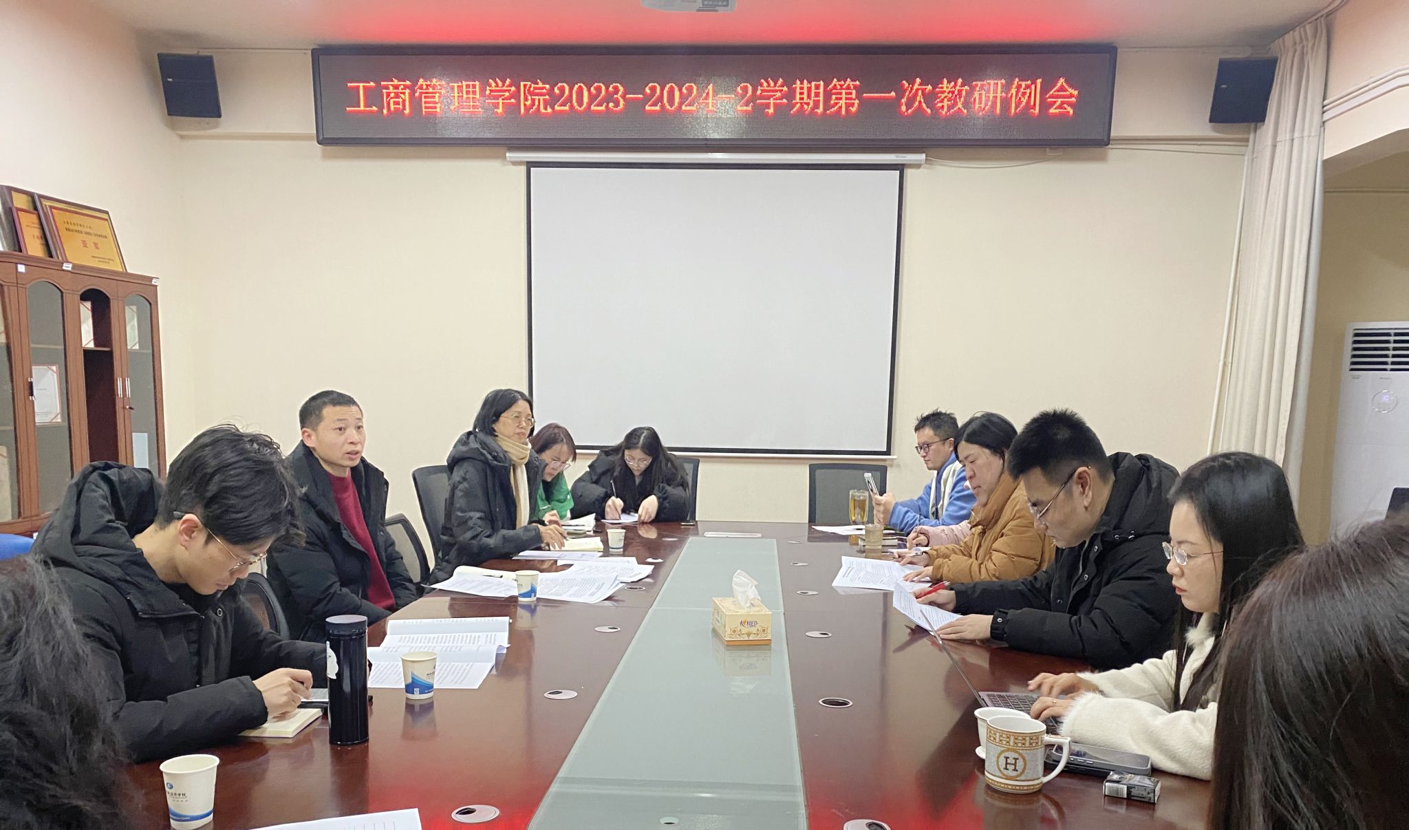 (本网讯)为推动落实教学工作高质量发展建设,全面做好新学期任务部署和规划,2024年2月28日上午,工商管理学院在会议室414-1召开2023年秋季学期教研例会。副院长梁辉煌主持会议,学院领导班子成员及各系正副主任参会。