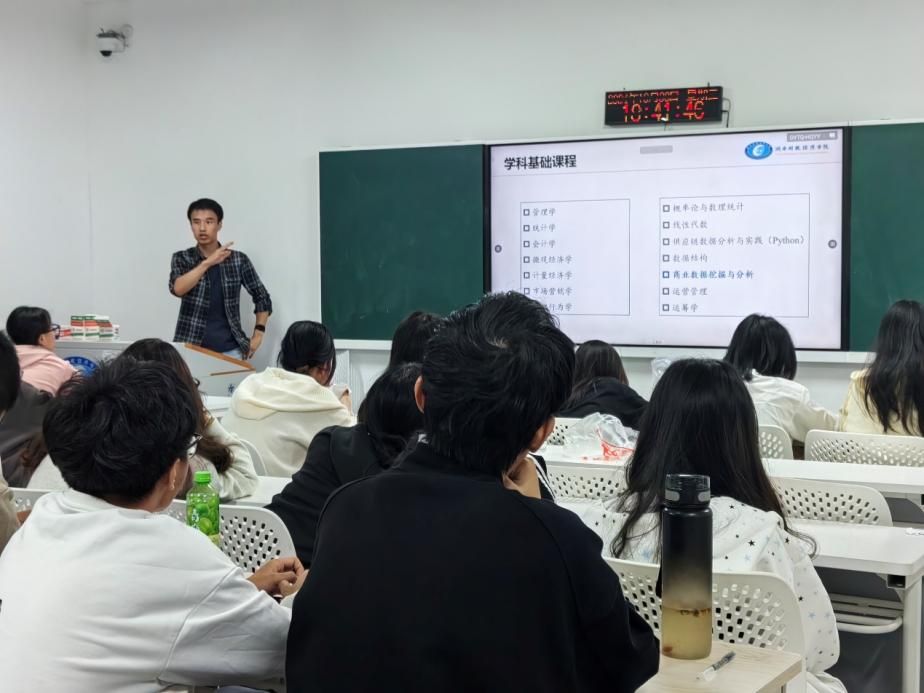 会上,郭攀详细介绍了供应链管理专业的课程体系,包括核心课程、选修课程及实习机会,帮助学生了解各门课程的内容及其在未来职业发展中的重要性。此外,他还推荐了一些相关专业书籍,鼓励学生积极阅读,以提升自己的学术水平和专业知识。