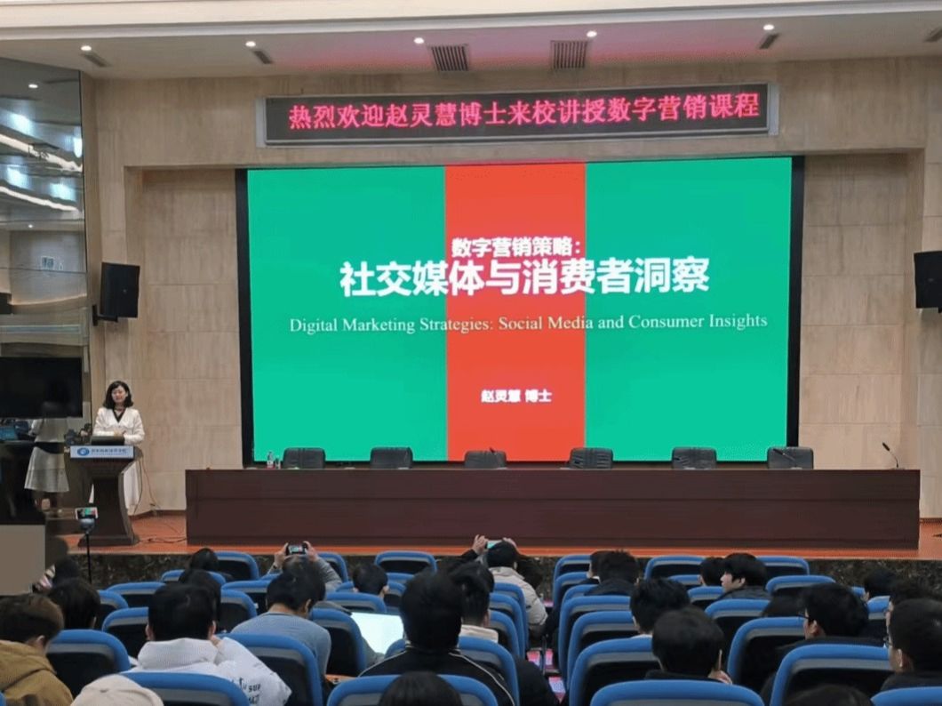 赵灵慧博士具备超过20年的互联网媒体营销管理经验,曾为多家世界500强企业提供策略支持,助力其实现市场增长。她凭借丰富的行业经验和深厚的学术功底,为同学们分享了宝贵见解和学术成果,提供了有益的启发和知识。同学们纷纷表示加深了对社交媒体的理解,掌握了洞察消费者需求的实用方法,为未来的市场营销实践奠定了坚实基础。
