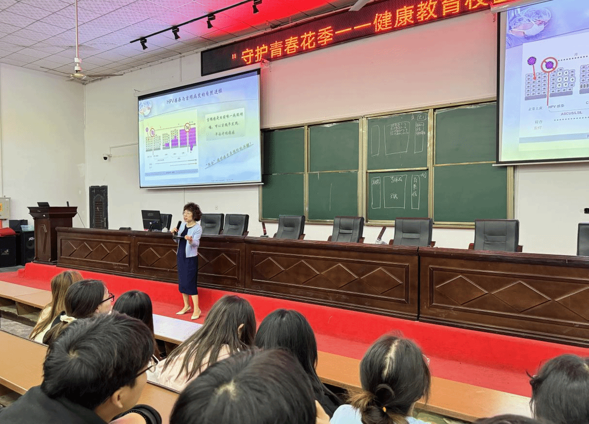 在讲座中,百佳玛丽亚医院院长黄菊芳教授和主治医生贺慧结合具体案例,详细讲解了青年学生如何预防HPV与宫颈癌的感染、以及青春期的生理健康知识。讲座过程中通过“现场健康答疑”、“问题竞答”等活动,加深了学生对生理健康、HPV与宫颈癌的了解。