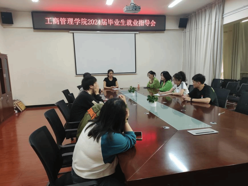 (本网讯)为有效促进应届毕业生的就业进程,加强对困难毕业生的就业帮扶,工商管理学院于5月7日上午在办公楼414-1会议室召开毕业生就业指导会。会议由学工办主任肖艳娟主持,学工助理姚一宁主讲,毕业班辅导员、有留校意愿的毕业生参与。