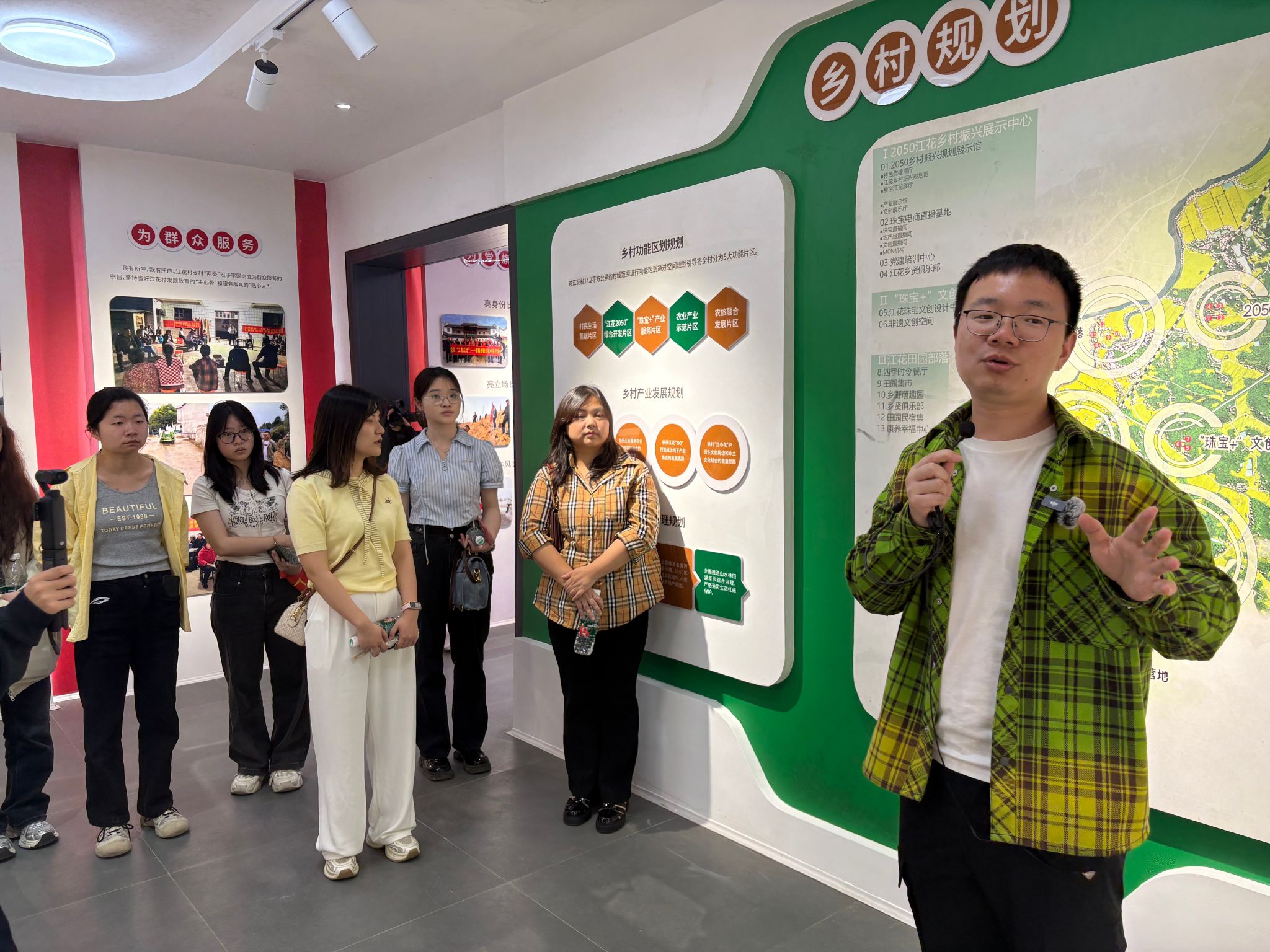 在戴晓的陪同下,师生们参观了江花乡村振兴创新发展中心,全面了解了企业的创立背景、业务布局、运营模式及文化理念。戴晓结合自身创业经历,生动阐述了乡村振兴战略为农村集体经济带来的发展机遇。他表示:“乡村振兴不仅是国家战略,更是青年施展才华的广阔舞台。希望学弟学妹们能扎根基层,将专业知识转化为推动乡村发展的实际动能。”鲜活的企业案例和戴晓的创业故事,让同学们对乡村振兴的实践路径有了更直观的认识,也激发了大家对职业规划的深度思考。