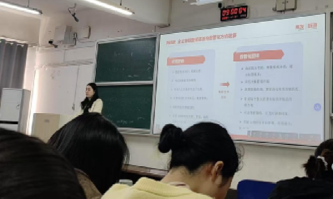 (本网讯)11月15日,工商管理学院于第三教学楼3209教室举办专题讲座。讲座邀请用友·新道公司资深专家赵嫣然围绕“趋势洞察:数智时代下的专业变革”作主题演讲,市场营销专业全体学生参加讲座
