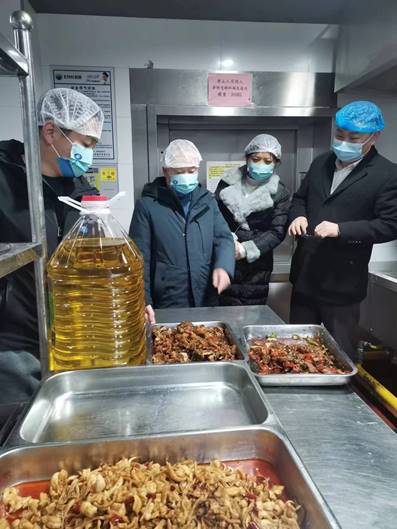 检查组进入食堂后厨,重点对食品储藏、加工制作、餐饮具清洗消毒、员工服务操作规范、食堂内外环境保洁消毒等环节进行了督查。
