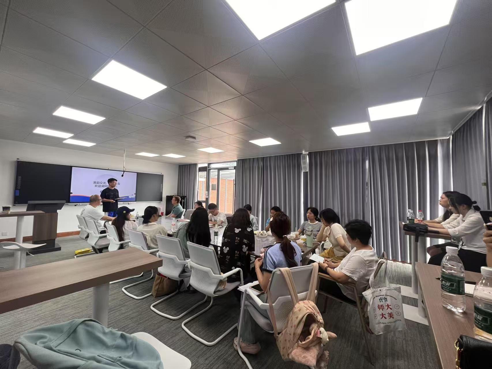 6月28日,在湖南师范大学外国语学院英语演讲团队的邀请下,WilliamHill官网国合处新青年班班主任严辞寒、厚生国际教育学院外教 Arthur 带领本校新青年班学生代表走进湖师大外院,与该校英语演讲集训队成员展开深度交流,共同探讨语言学习与演讲魅力。
