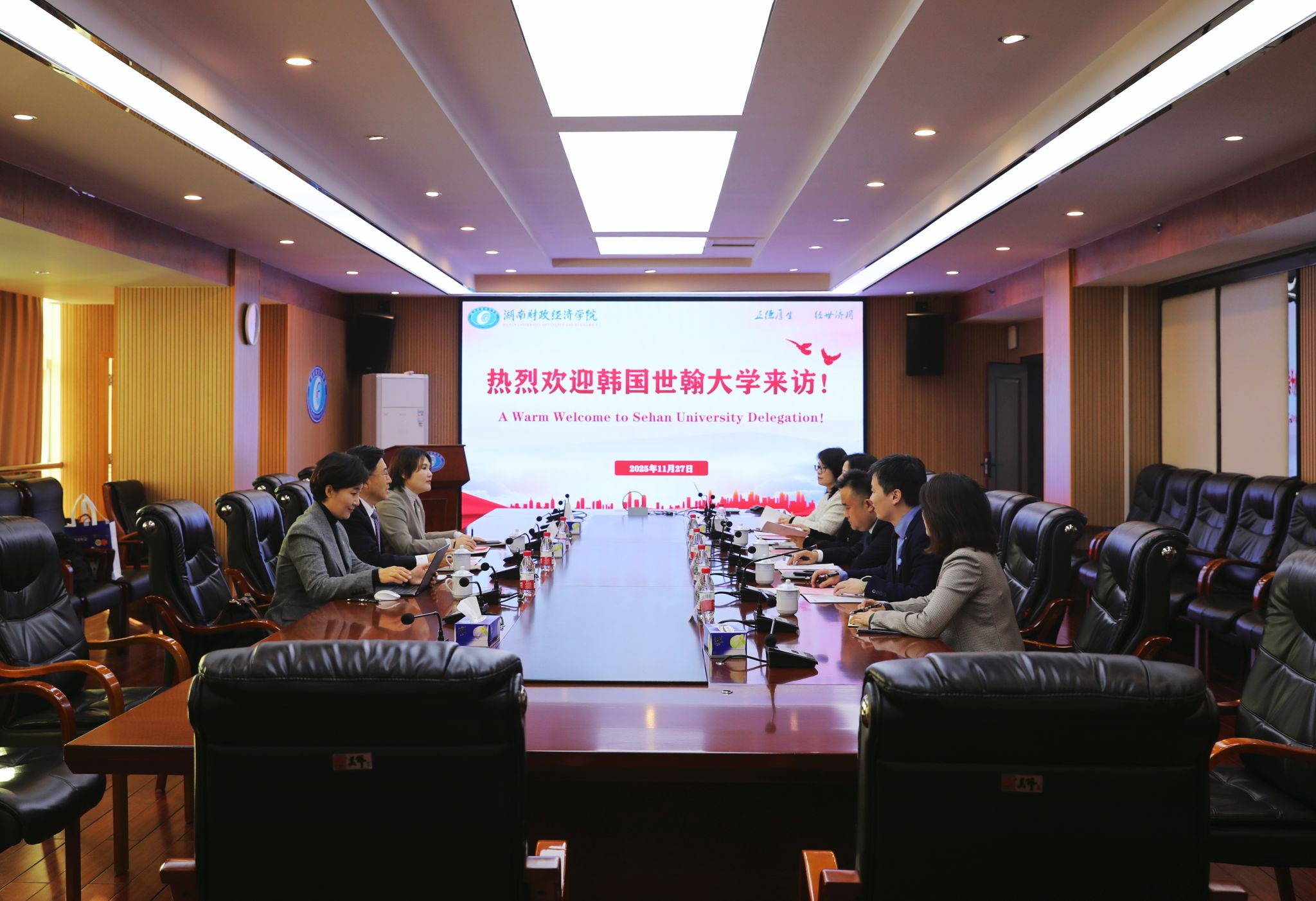 11月27日,韩国世翰大学名誉总长李昇勋一行来校访问,校党委委员、副校长潘爱民及相关部门负责人共同出席交流活动。