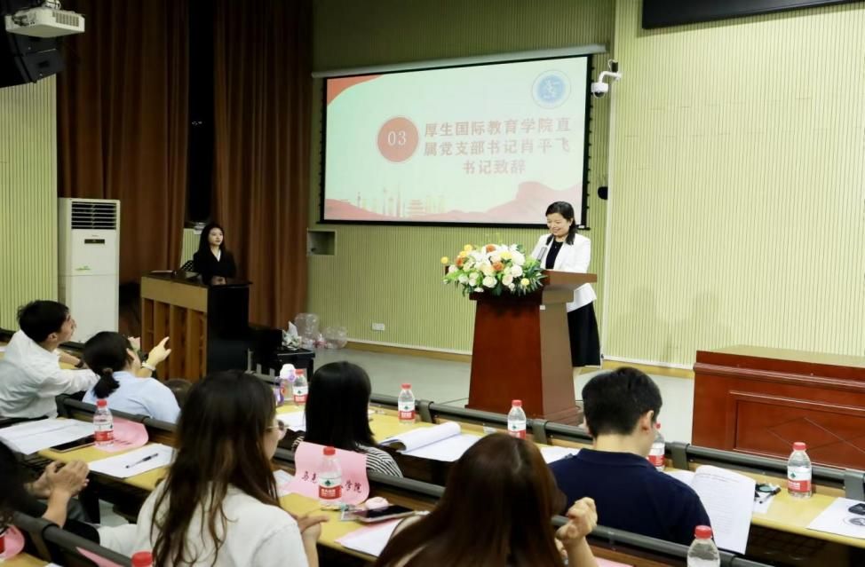 厚生国际教育学院直属党支部书记肖平飞发表了致辞。肖平飞对学院优秀学生代表所获得的荣誉与奖项进行了表彰,并强调学生们要重视文化知识的学习,提高自身文化素养;学生干部要充分发挥引领作用,不断提升综合素质。她还勉励学生们要担当起时代赋予的责任,砥砺前行。
