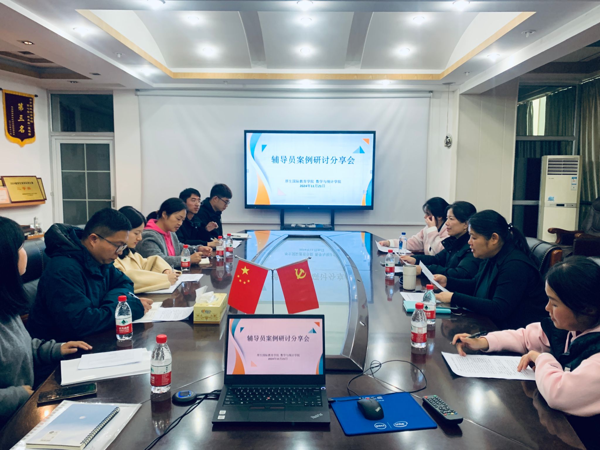 为进一步提升思政教育工作实效,加强辅导员专业能力,紧密联系学生工作新形势、新任务。11月21日下午,厚生国际教育学院联合数学与统计学院举办学生工作案例专题研讨会。数学与统计学院党总支书记王萱、厚生国际教育学院直属党支部书记肖平飞,以及两个学院全体专兼职辅导员参会。