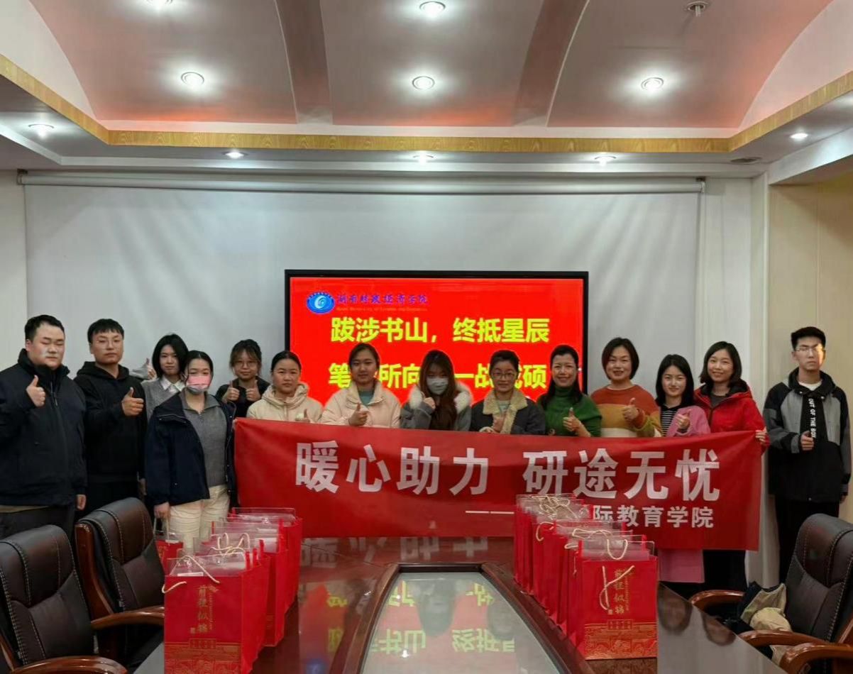 为鼓舞考研学子士气,传递学院温暖关怀,厚生国际教育学院于12月10日下午在办公楼829室举办“暖心助力 研途无忧”考研送温暖活动。学院直属党支部书记肖平飞、综合办公室主任马艳、教务办主任陈爽、学工办负责人胡佩瑶、团总支书记汤雷出席活动,与同学们亲切交流,并为大家送上精心准备的祝福礼包。
