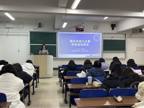 12月15日-18日,厚生国际教育学院在第三教学楼,分年级召开考前诚信教育大会暨期末总结会。会议由院团总支书记吴秋玉老师主持,2021、2022、2023级全体学生参会。