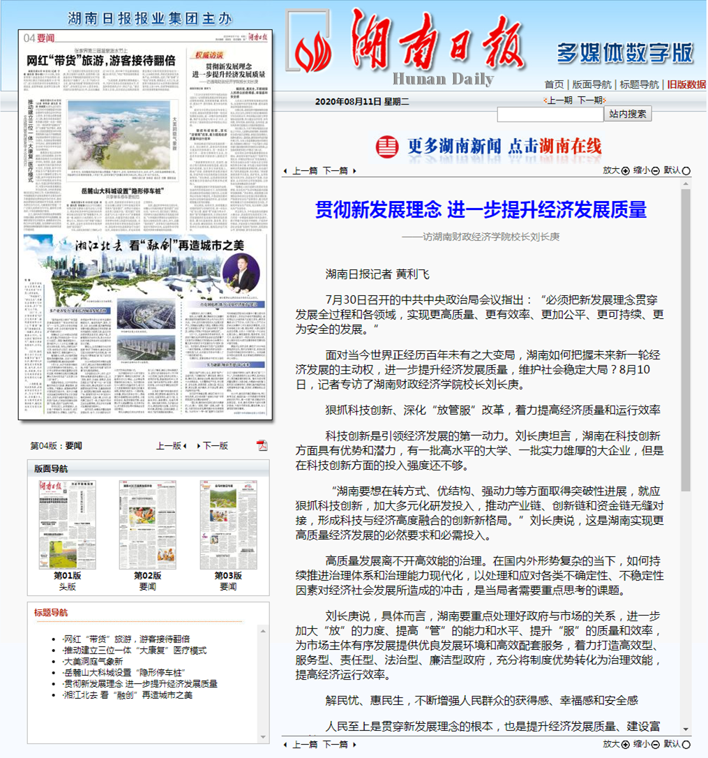 湖南日报报道链接:http://hnrb.voc.com.cn/hnrb_epaper/html/2020-08/11/content_1467682.htm?div=-1&from=groupmessage湖南日报·新湖南客户端记者 黄利飞7月30日召开的中共中央政治局会议指出:“必须把新发展理念...