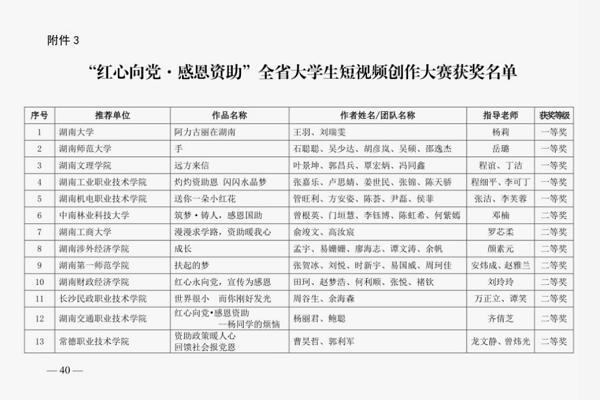 新湖南客户端9月23日讯(通讯员 高婕 摄影:刘玲玲)9月14日,由湖南省教育厅举办的“红心向党·感恩资助”全省大学生短视频创作大赛评选结果公布,由WilliamHill官方网站工商管理学院刘玲玲老师指导、田珂等5名学生创作...