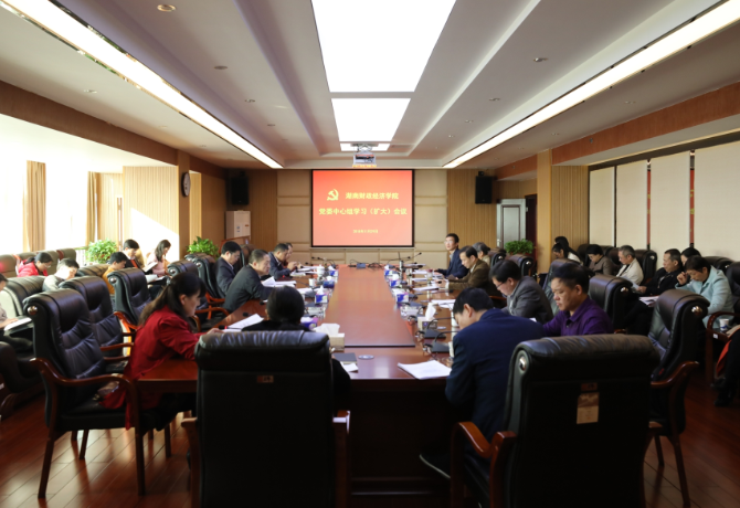 新湖南客户端12月13日讯(通讯员 唐雄伟 摄影 汪洋)11月29日上午,湖南财院召开党委中心组学习(扩大)会议,围绕“进一步落实意识形态工作责任制,做好学校意识形态工作”和“加强新时代高校院(系)党的组织建设”...