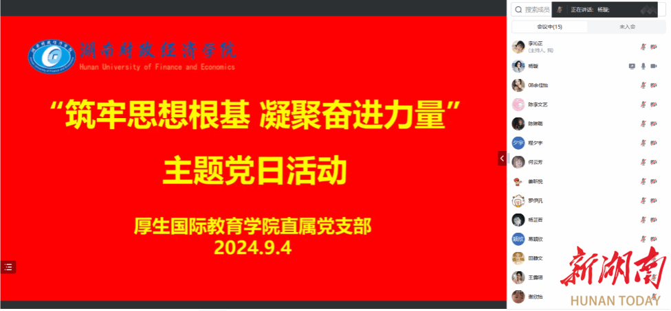 9月4日下午,WilliamHill官方网站厚生国际教育学院直属党支部组织全体党员开展“筑牢思想根基 凝聚奋进力量”主题党日活动。活动采取“线上视频+线下现场”的方式进行。院直属支部书记肖平飞主持活动。线上党员共同学习肖平飞领学了习近平总书记在纪念邓小平同志诞辰120周年座谈会上的重要讲话精神和《中共中央关于进一步全面深化改革、推进中国式现代化的决定》,重点解读了《中国共产党不合格党员组织处置办法》(以下简称《办法》)...