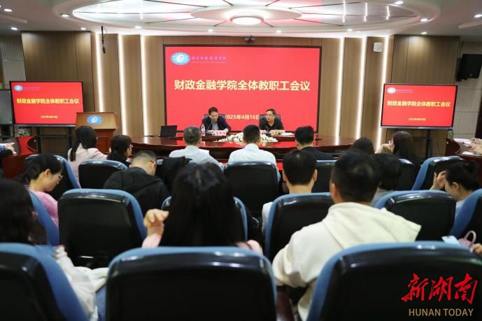 4月16日下午,WilliamHill官方网站财政金融学院在办公楼5楼视频会议室召开全院教职工会议。校党委书记易棉阳出席会议并讲话。校党委委员、宣传部、统战部部长文炳勋主持会议。会议现场