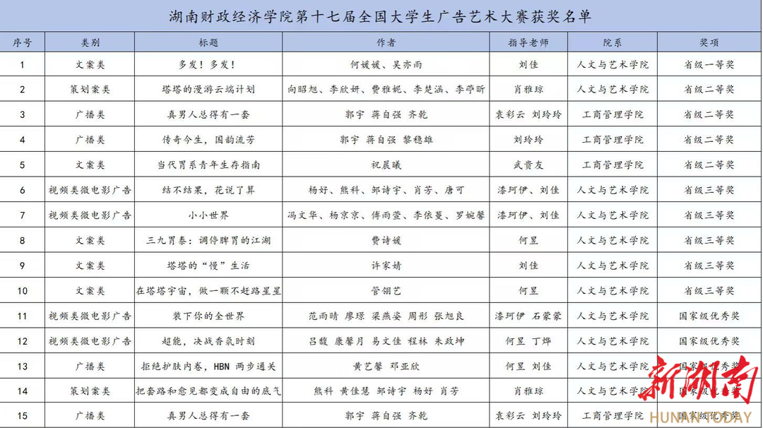 新湖南:湖财学子在全国大学生广告艺术大赛中获奖