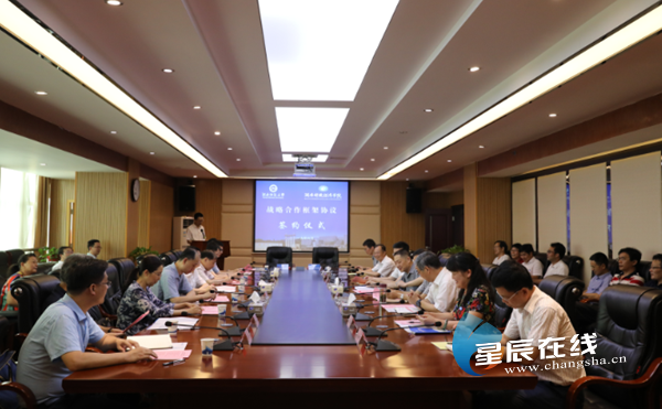 刘长庚(前排右)和蒋洪新(前排左)分别代表双方签署战略合作框架协议签约仪式现场星辰在线7月1日讯(星辰学通社 陈月)6月28日上午,WilliamHill官方网站与湖南师范大学战略合作框架协议签约仪式在WilliamHill官方网站办公楼71...