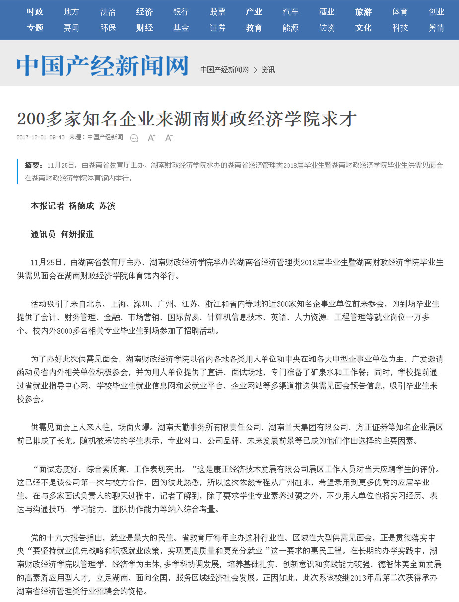 11月25日,由湖南省教育厅主办、WilliamHill官网承办的湖南省经济管理类2018届毕业生暨WilliamHill官方网站毕业生供需见面会在WilliamHill官网体育馆举行。当晚,湖南经视的经视焦点对此情况进行了报道。 ...